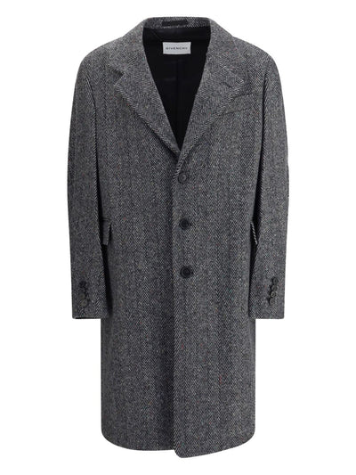 Herringbone-Pattern Notched-Lapel Coat