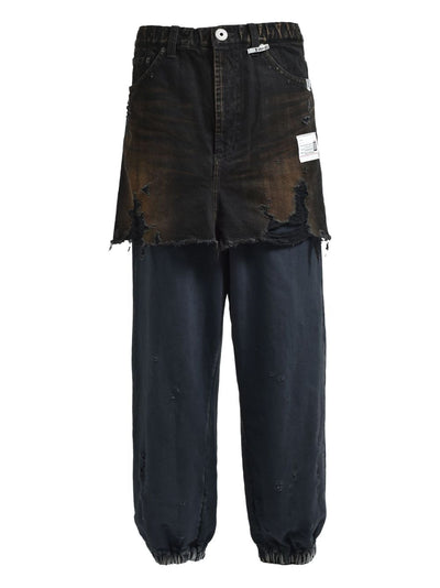Frayed Denim-Panel Jeans