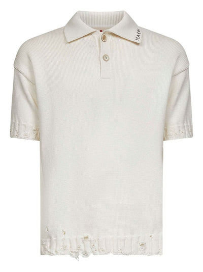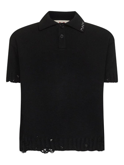 Ribbed-Collar Frayed-Edge Polo Shirt