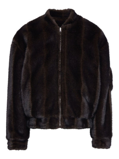 Faux-Fur Zip-Front Bomber Jacket