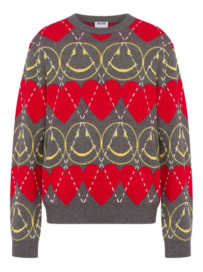 Smiley-Face Heart-Pattern Sweater