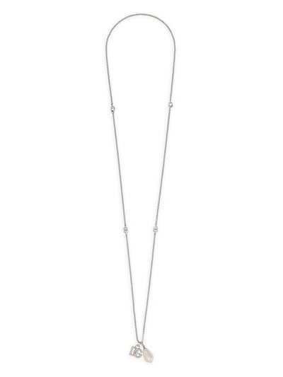 Logo-Plaque Pearl-Pendant Necklace