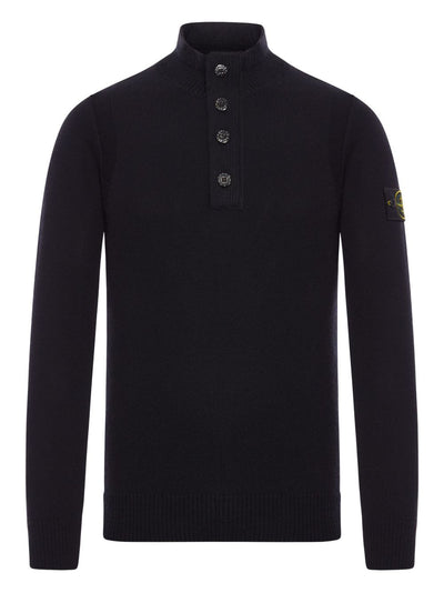 High-Neck Button Wool Sweater
