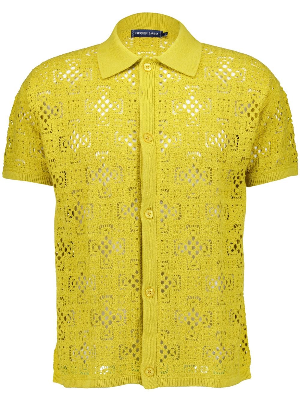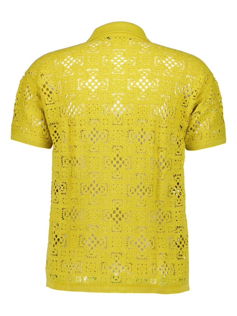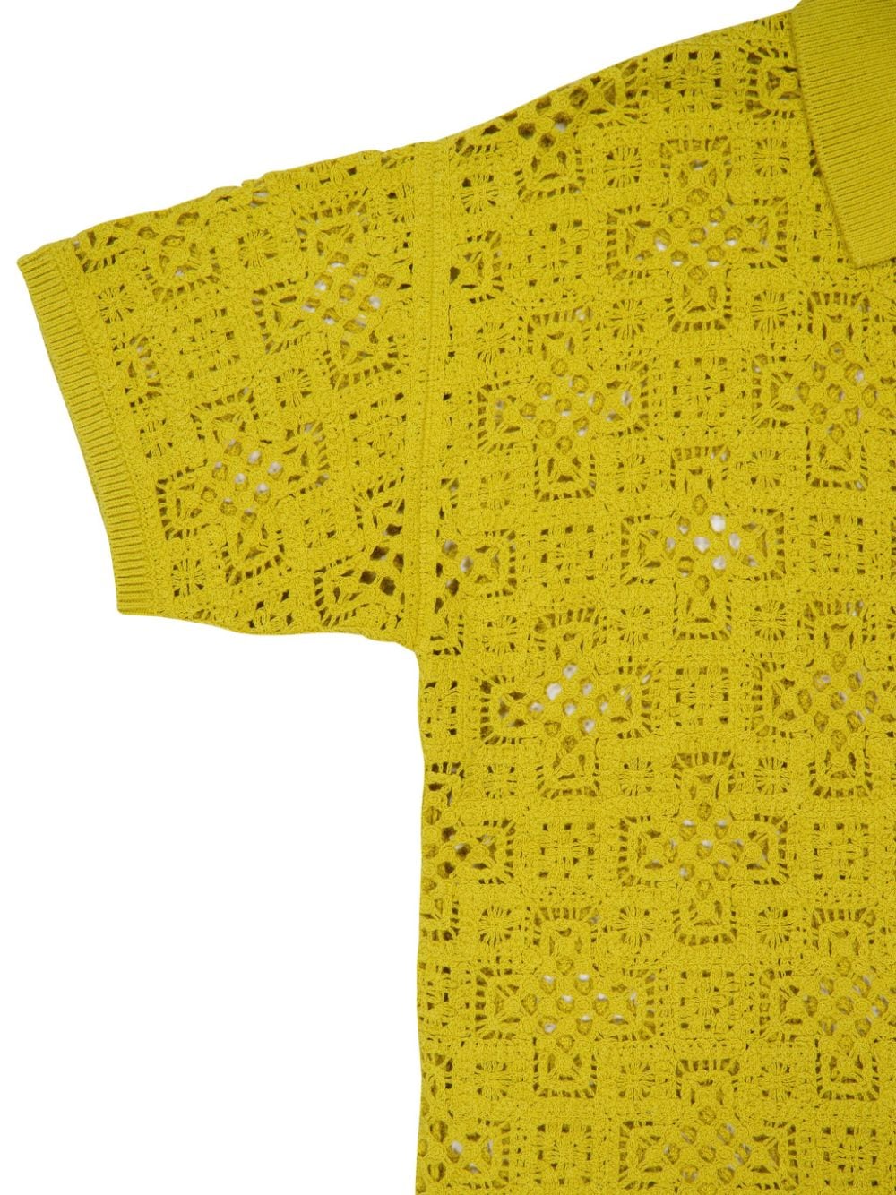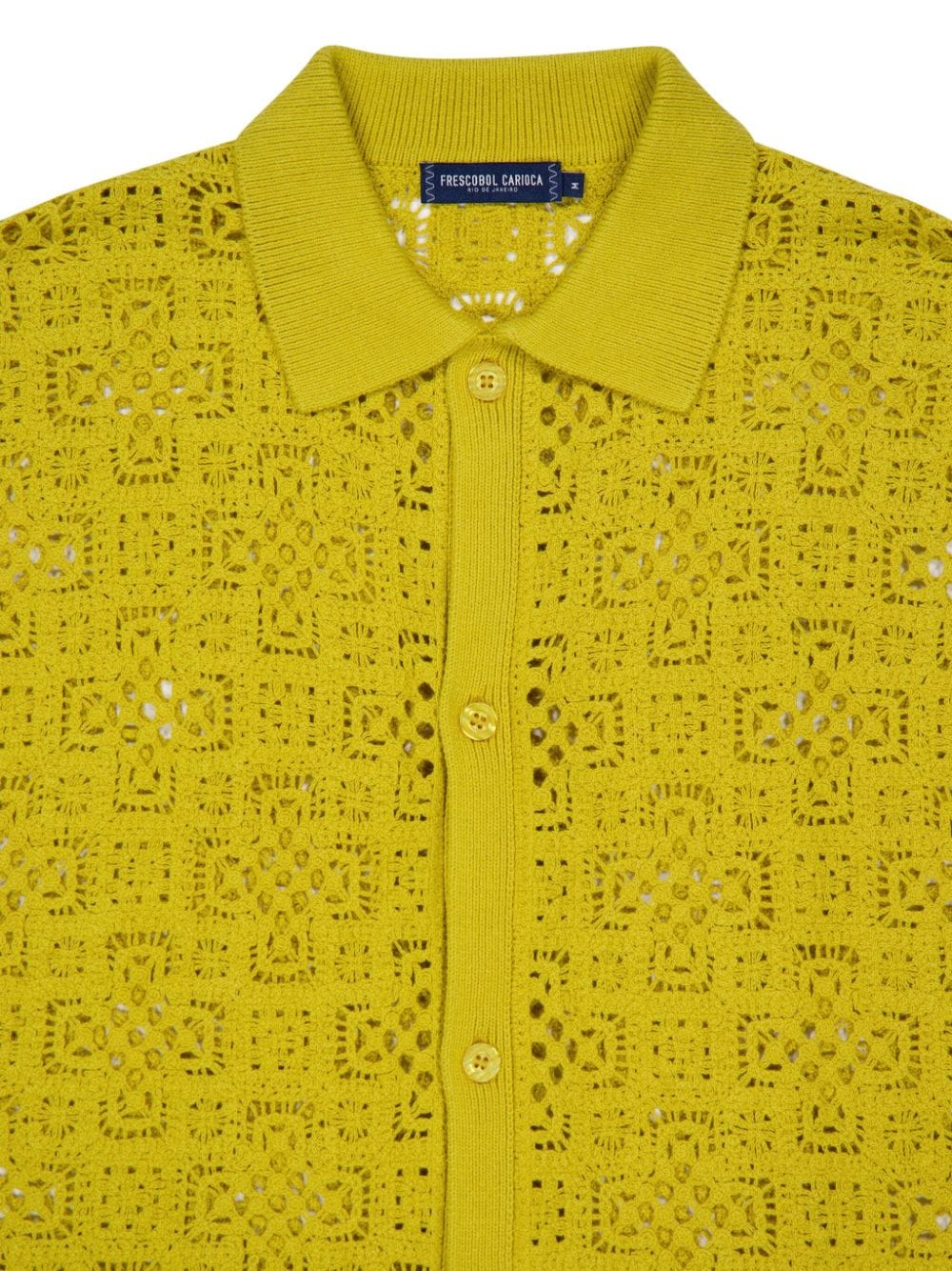 citron yellow cotton crochet spread collar front button fastening straight hem
