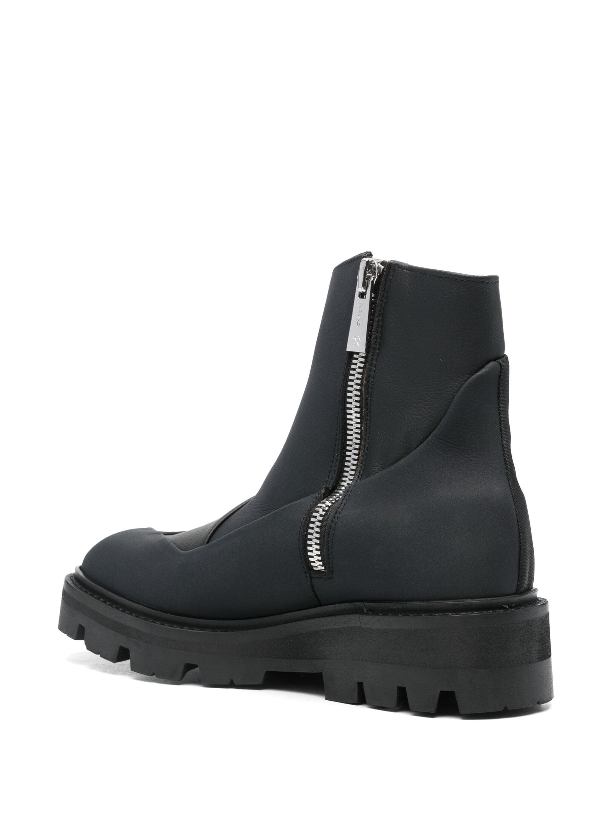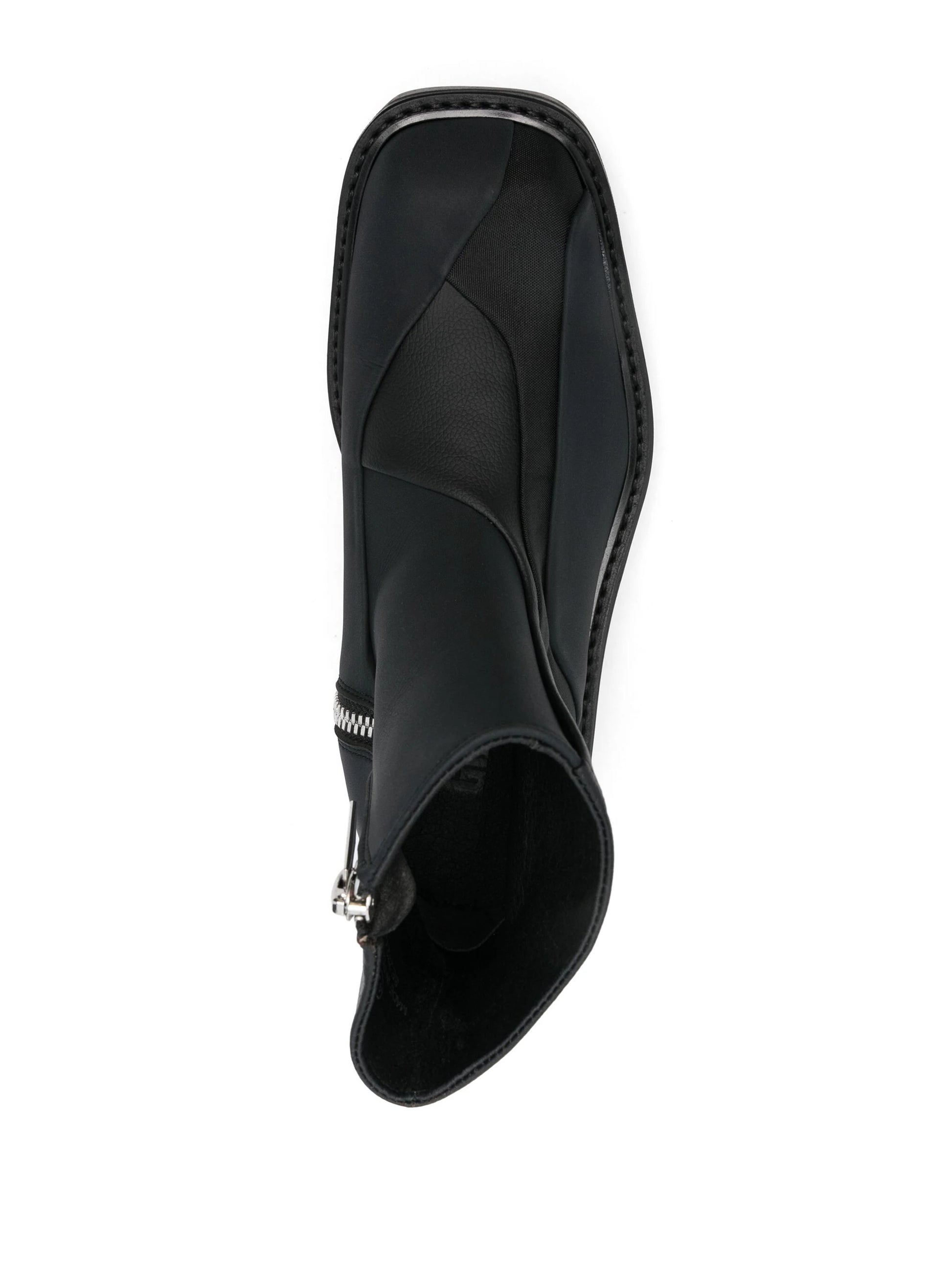 black artificial leather matte effect patchwork design side zip fastening square toe branded insole ankle-length rubber lug sole