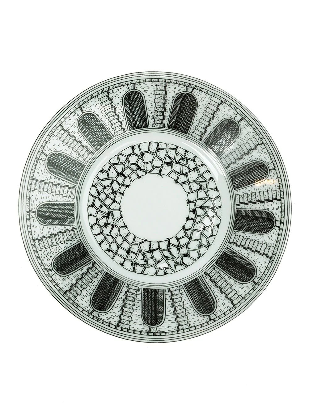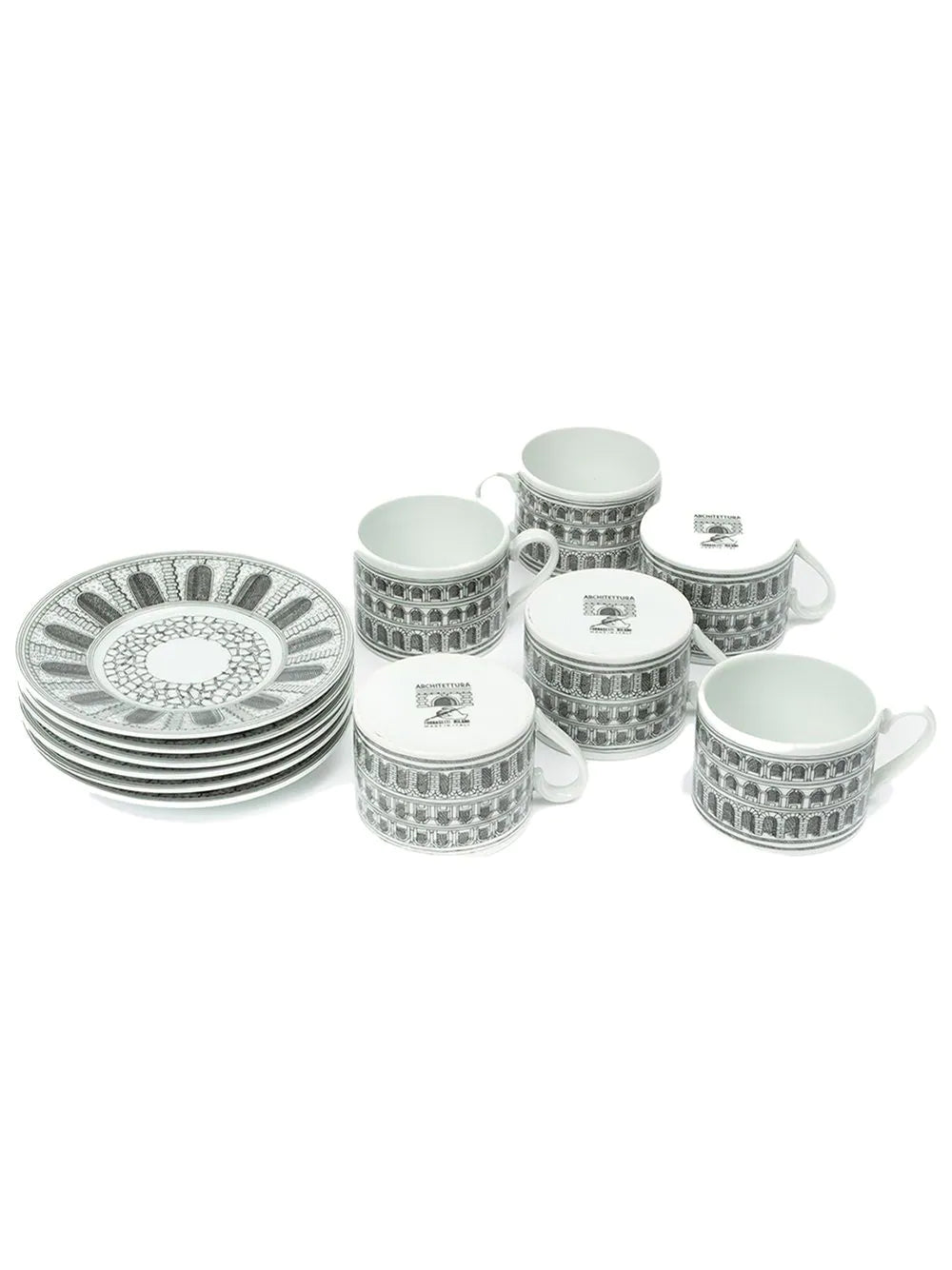 Black and white porcelain 'Architettura' cup and saucer set from Fornasetti.