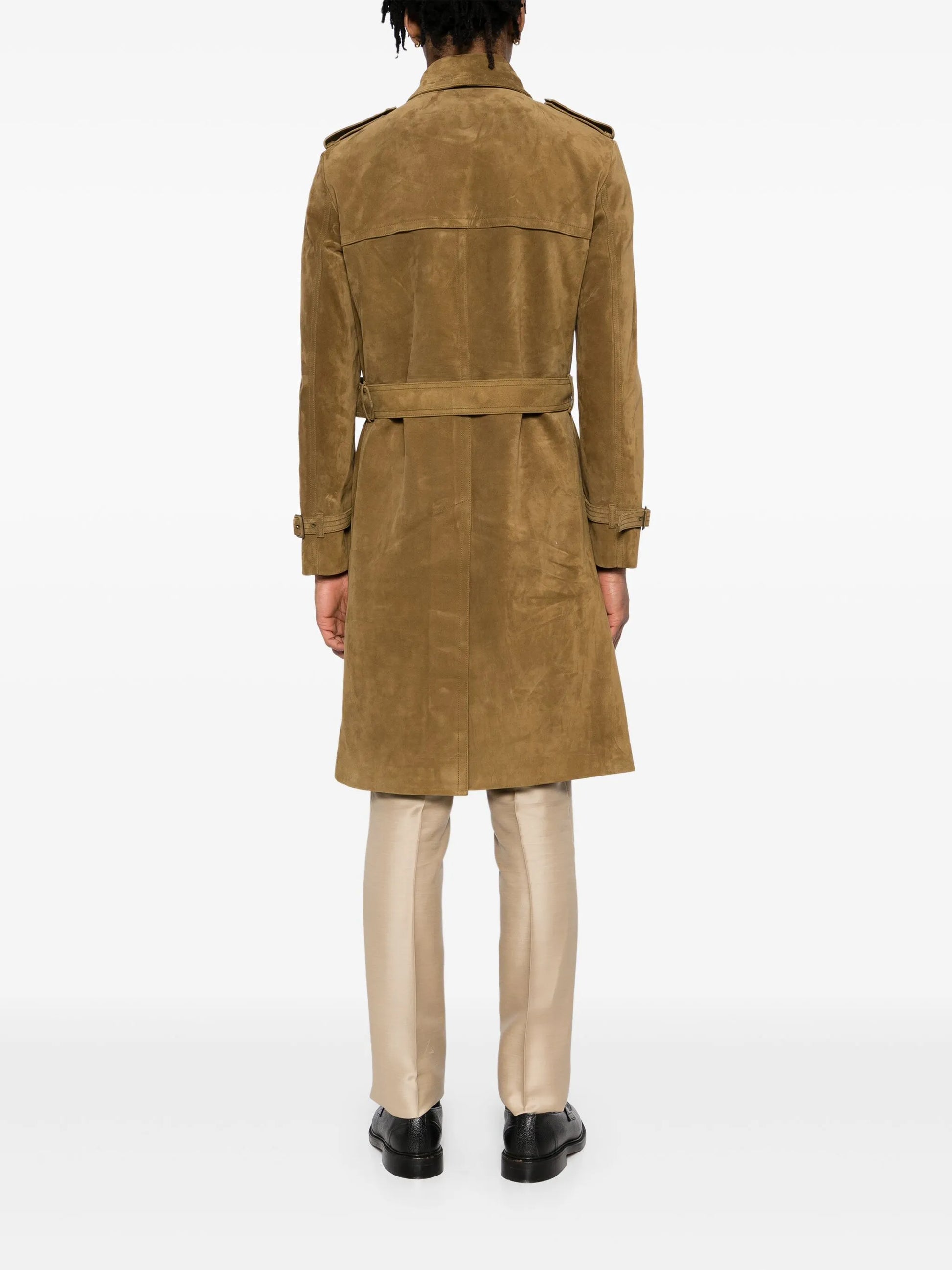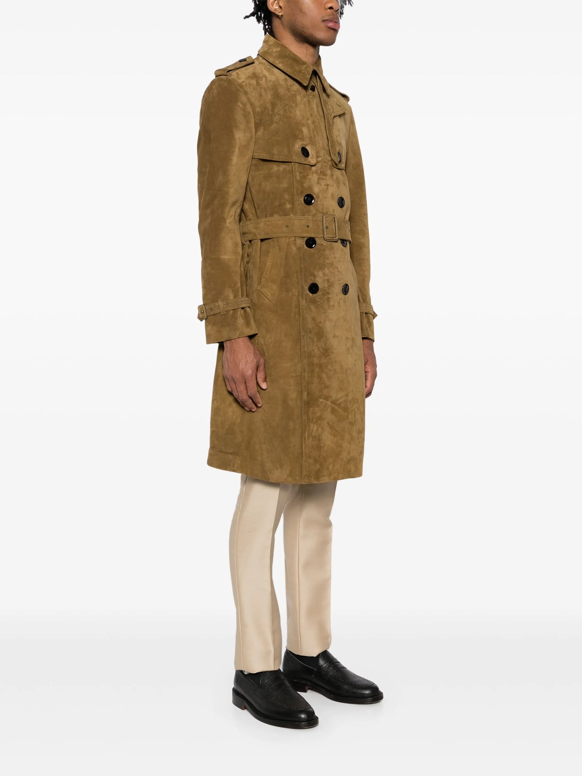 This Olive Brown Double-Breasted Buttery Suede Trench Coat features a luxurious, soft texture and a versatile, stylish design. With a double-breasted button fastening, two side welt pockets, and a detachable and adjustable waist belt with belt loops, this coat offers both functionality and fashion. Elevate your wardrobe with this timeless and elegant piece that will keep you warm and sophisticated in any weather.