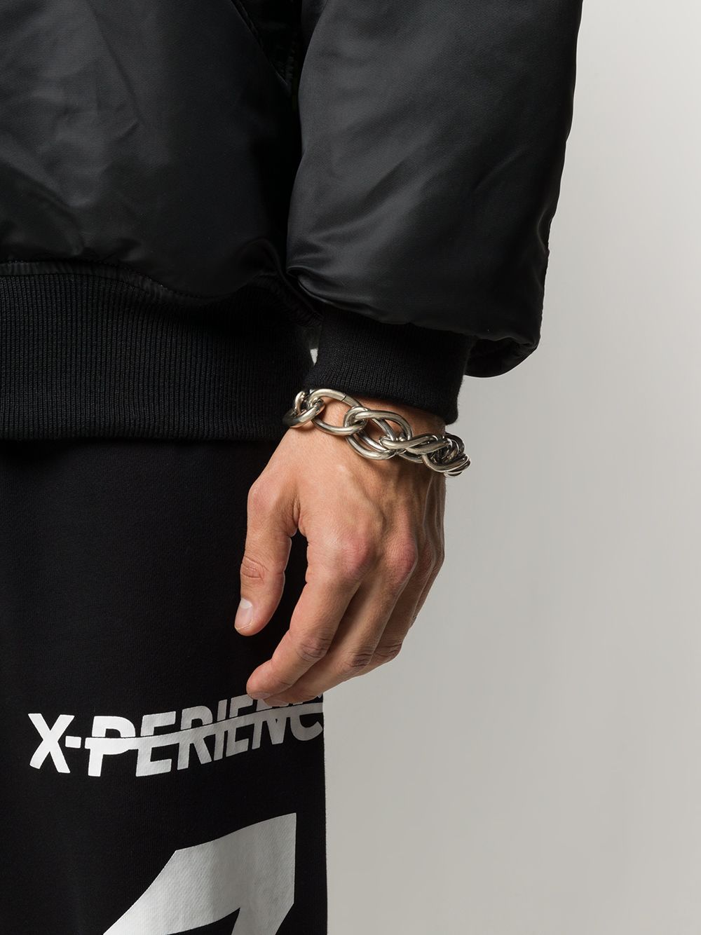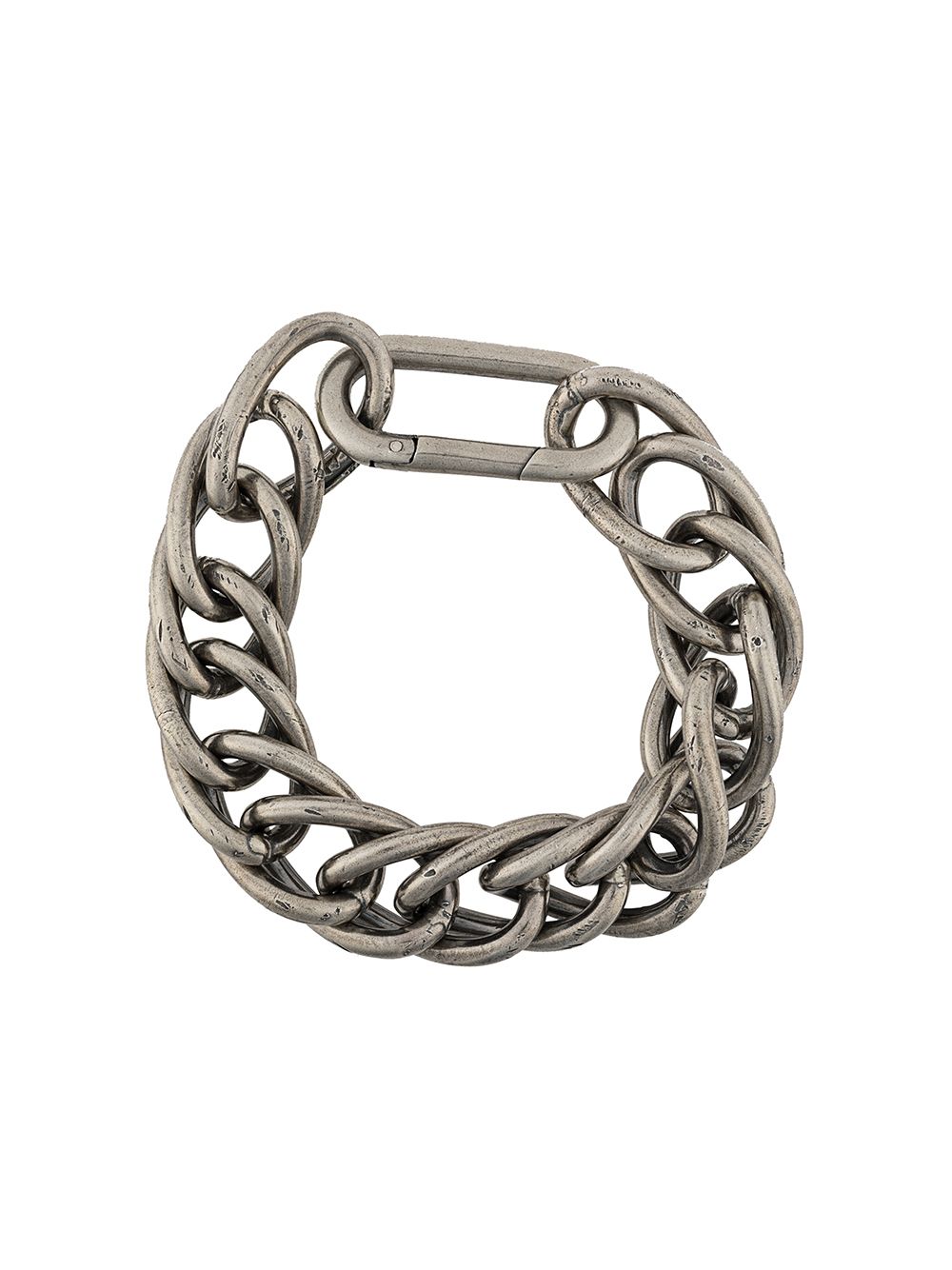Silver-tone chain link charm bracelet from Goti featuring brass hardware, a chain link strap and an engraved logo.