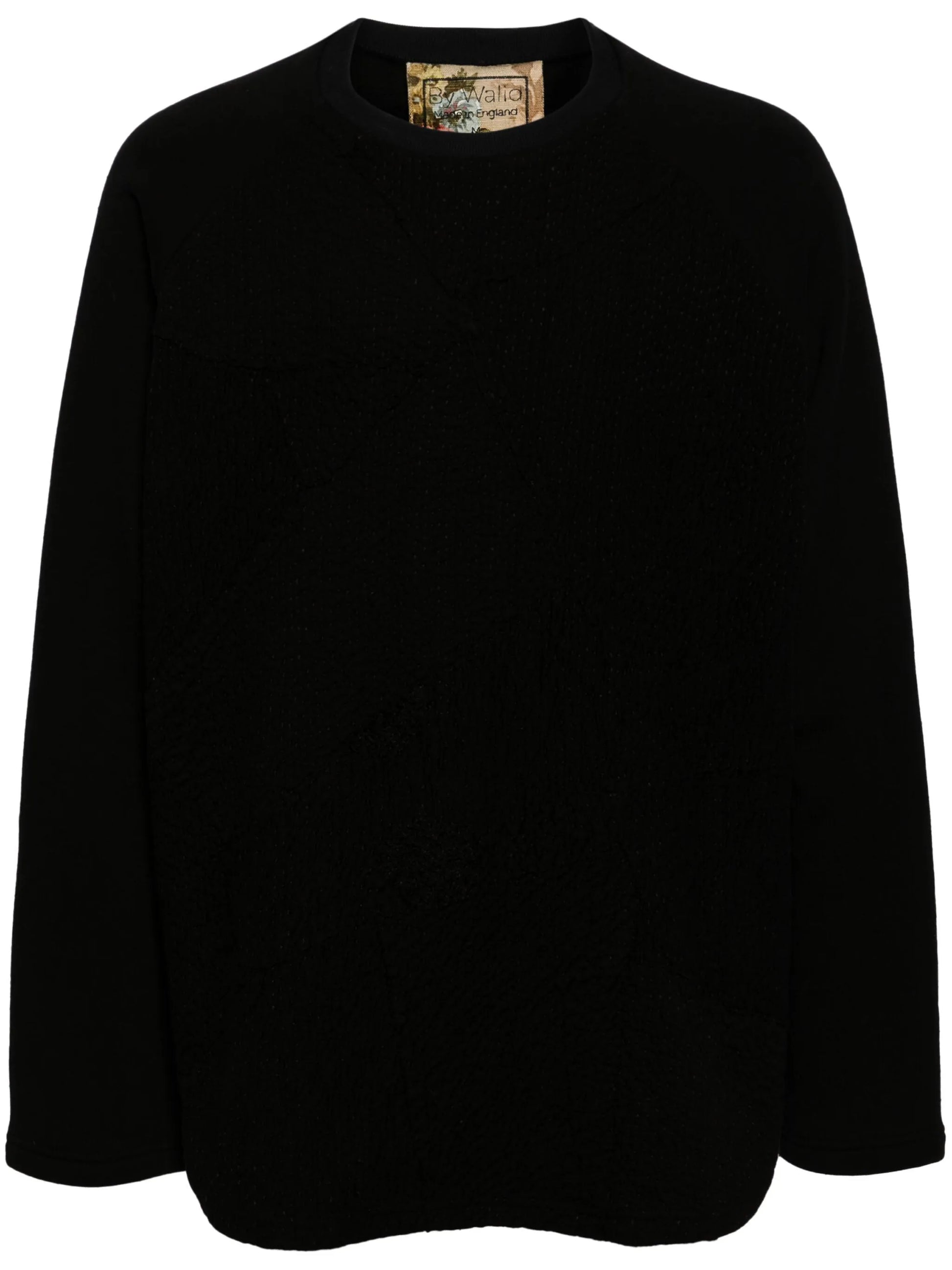 black cotton knitted construction crew neck long sleeves straight hem