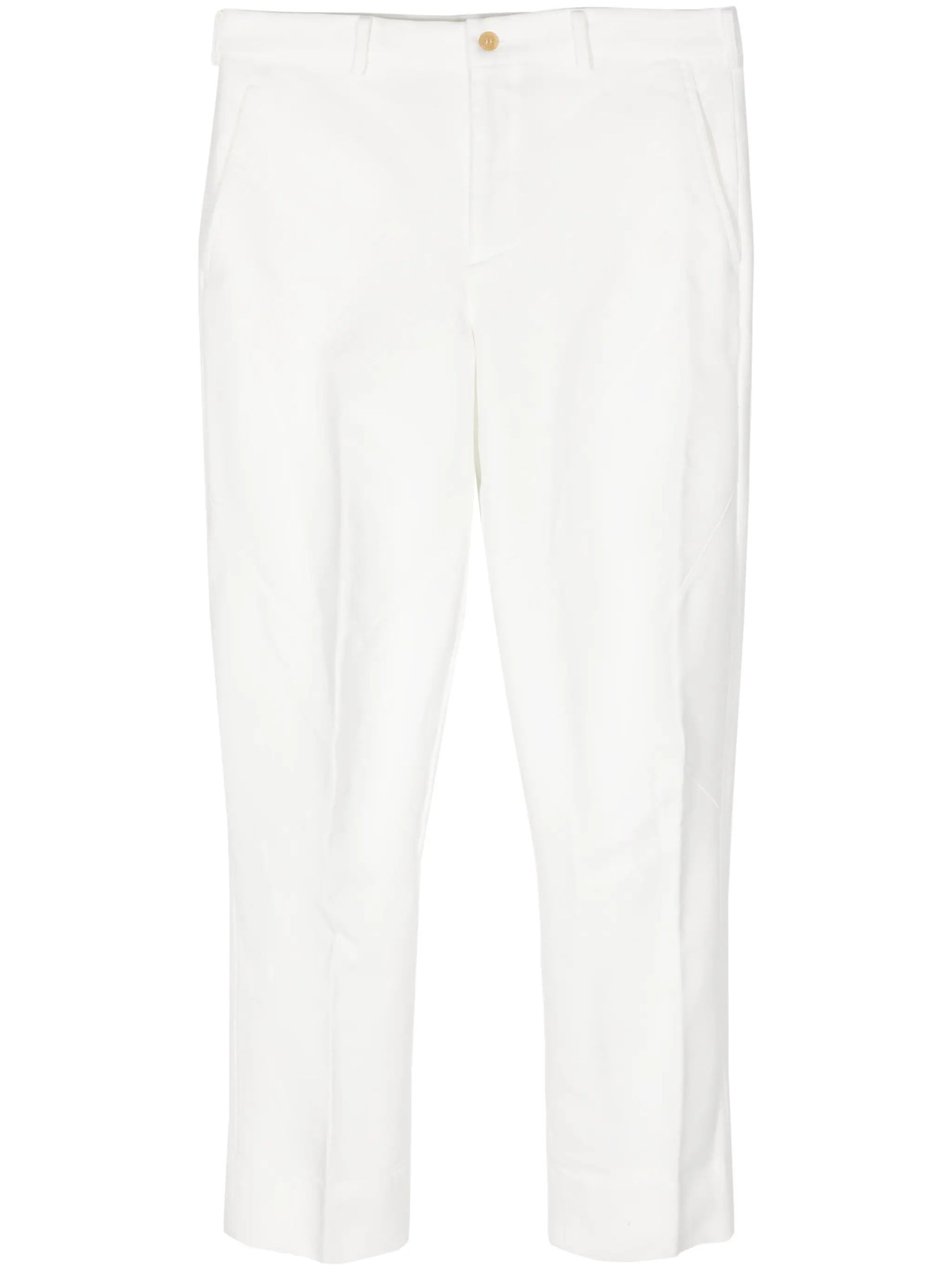 white belt loops two diagonal pockets to the sides rear button-fastening pocket rear welt pocket pressed crease cropped leg slim cut concealed fly and button fastening