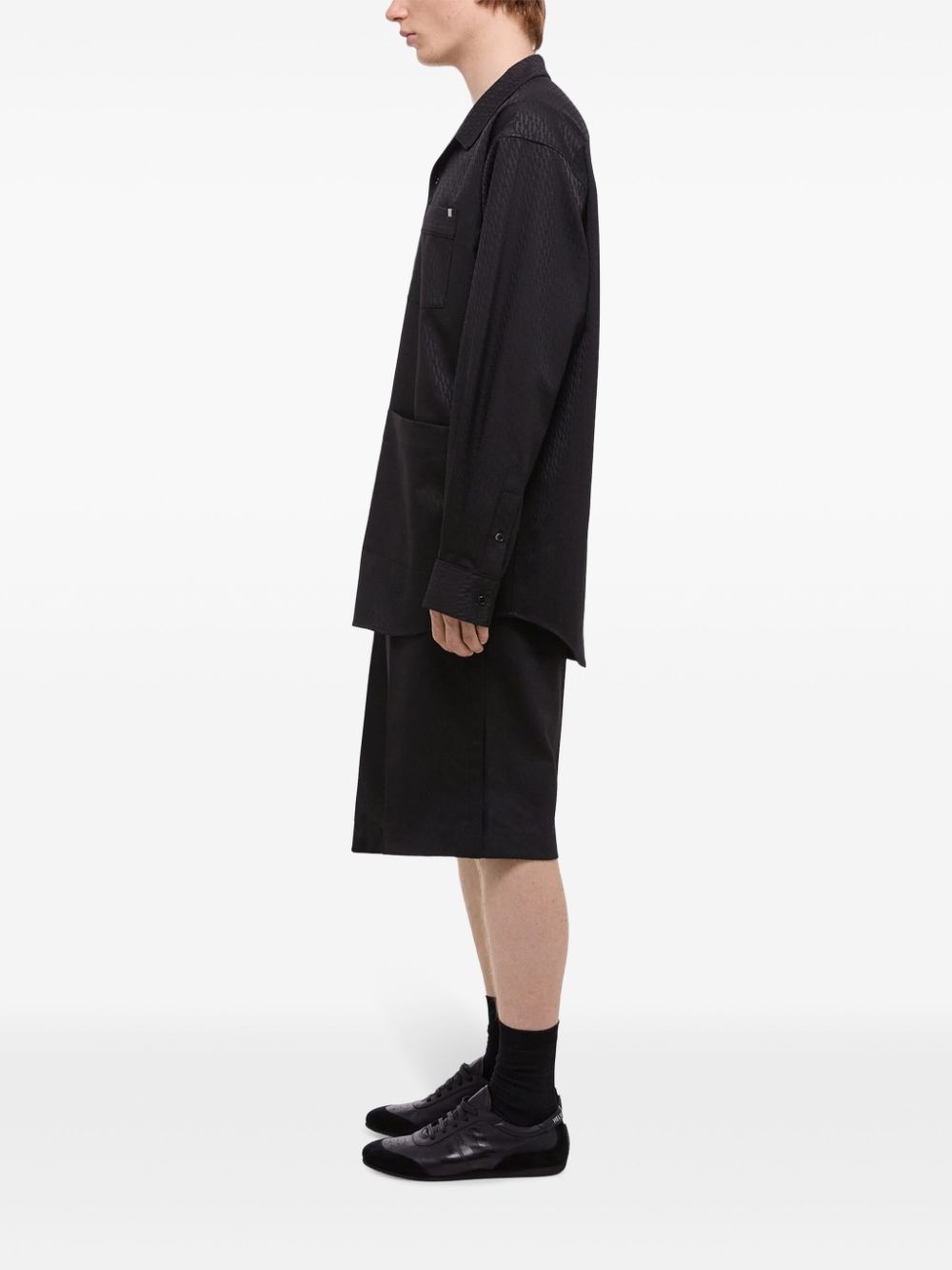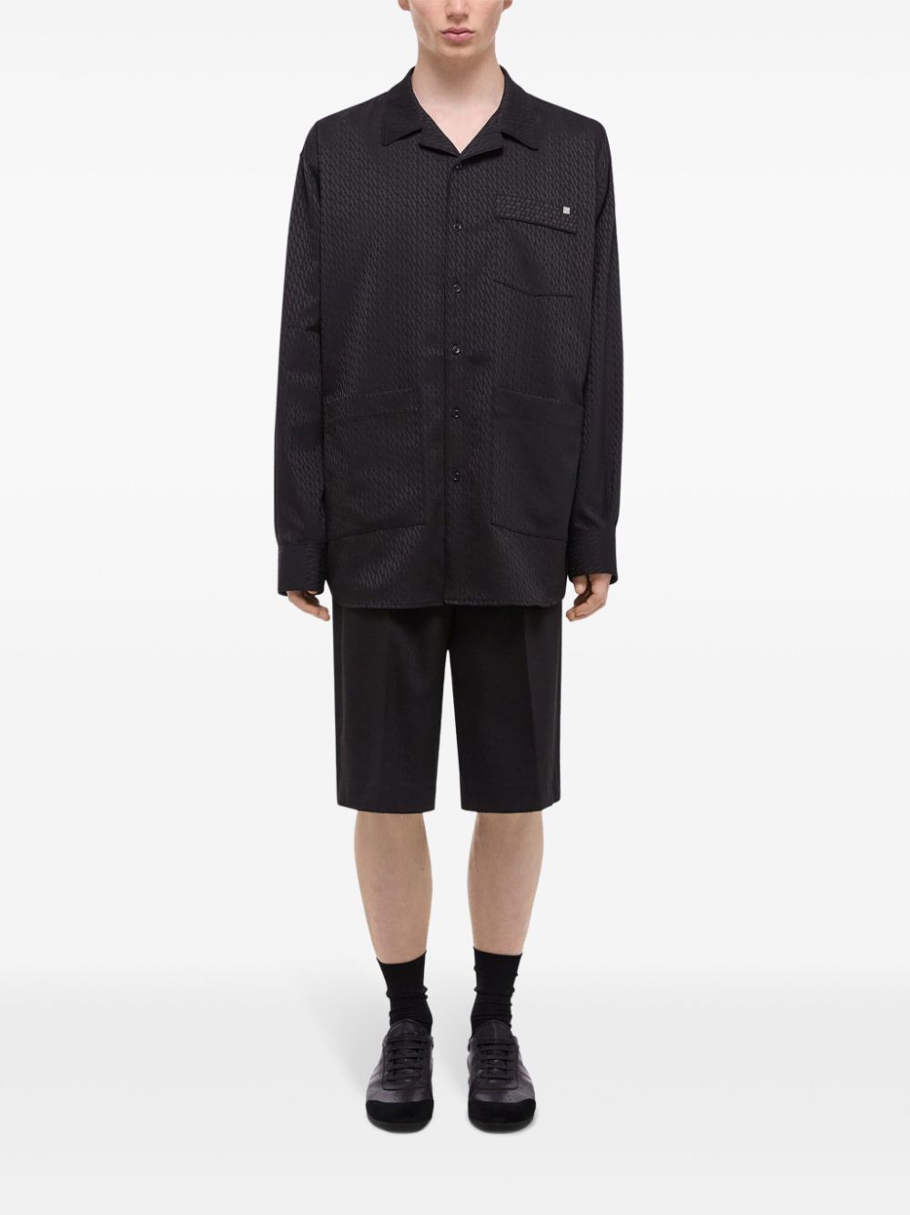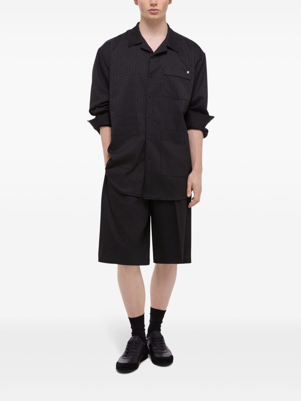 Expertly designed with a striking geometric print, this black shirt is a timeless addition to any wardrobe. The front button fastening and chest patch pocket provide both style and functionality, while the buttoned cuffs and notched collar complete the sophisticated look. A must-have for any fashion-forward individual.