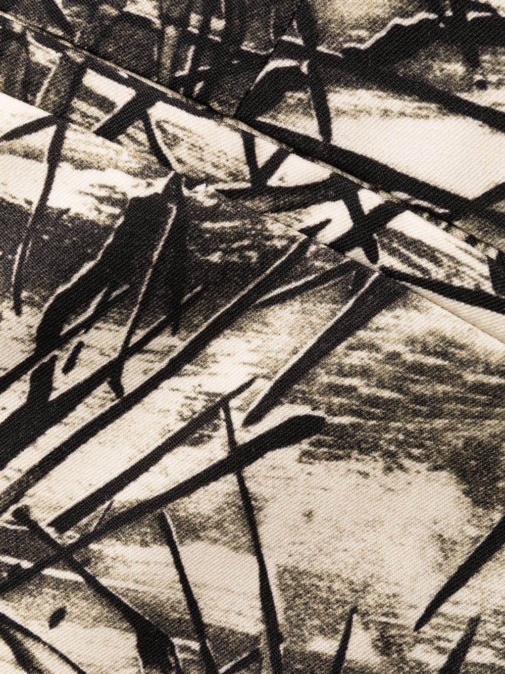 White/black wool blend graphic-print flared trousers from AMIRI featuring all-over graphic print, high-waisted, elasticated waistband and flared.