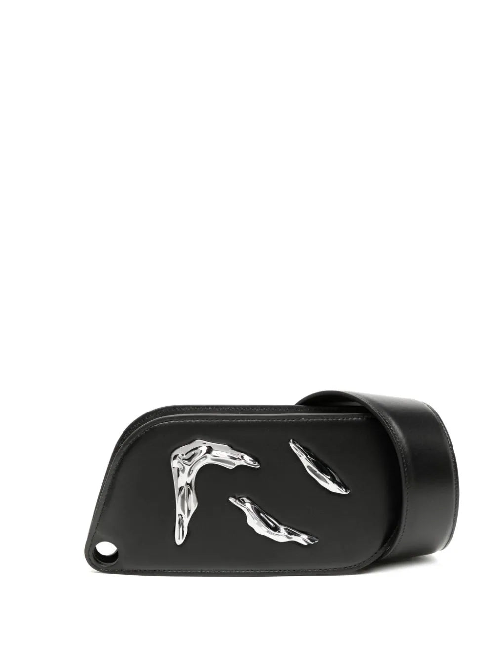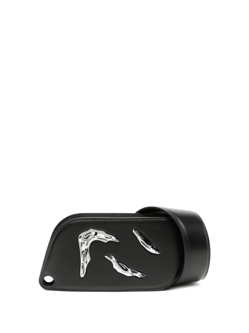 hardware-detail shoulder bag from PUBLISHED BY featuring black, calf leather, silver-tone hardware, punch-hole detailing, detachable shoulder strap, concealed top zip fastening and main compartment.