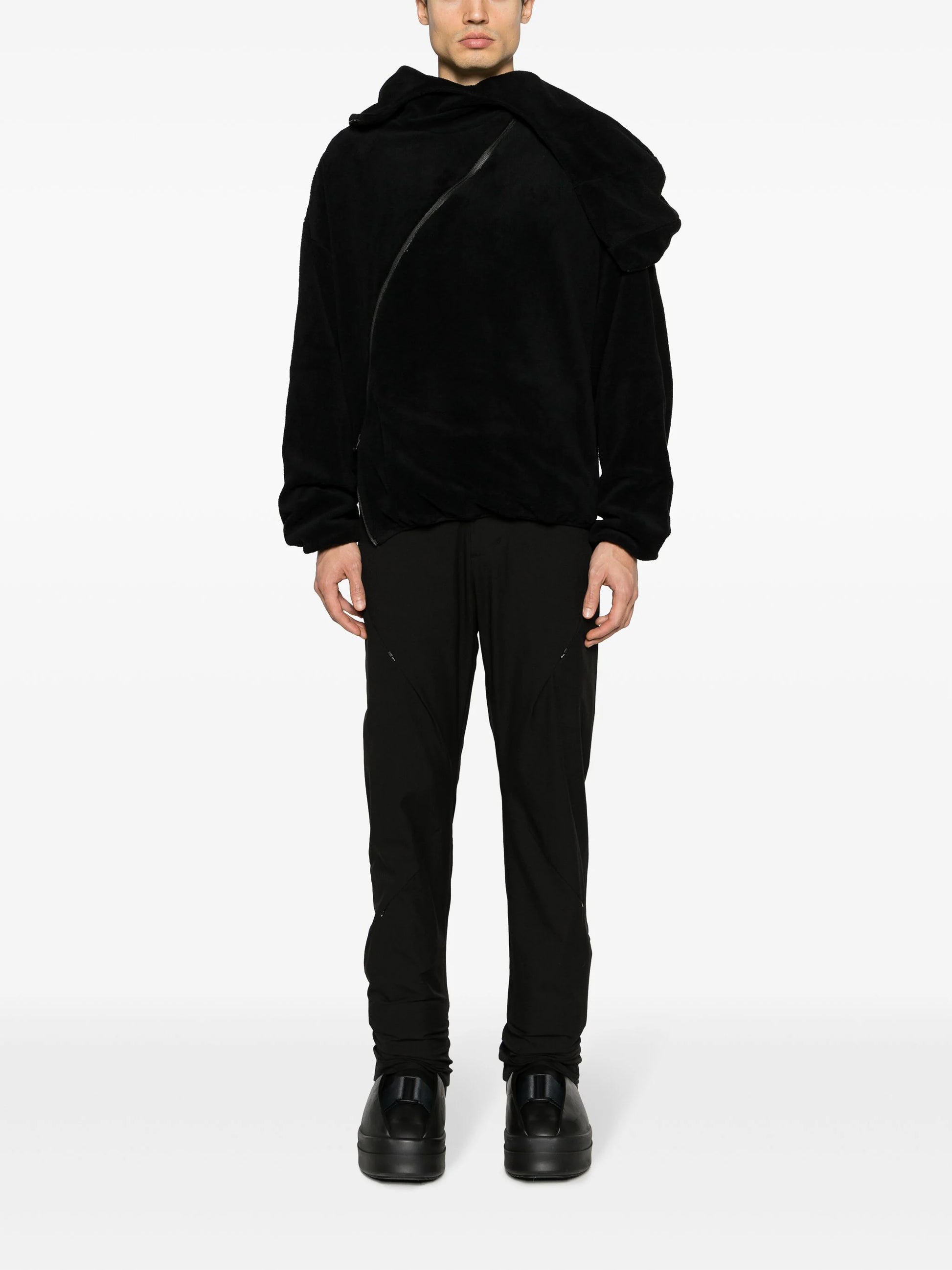 black high-waisted two zip-fastening pockets rear zip-fastening pocket tapered leg concealed fly and button fastening straight hem