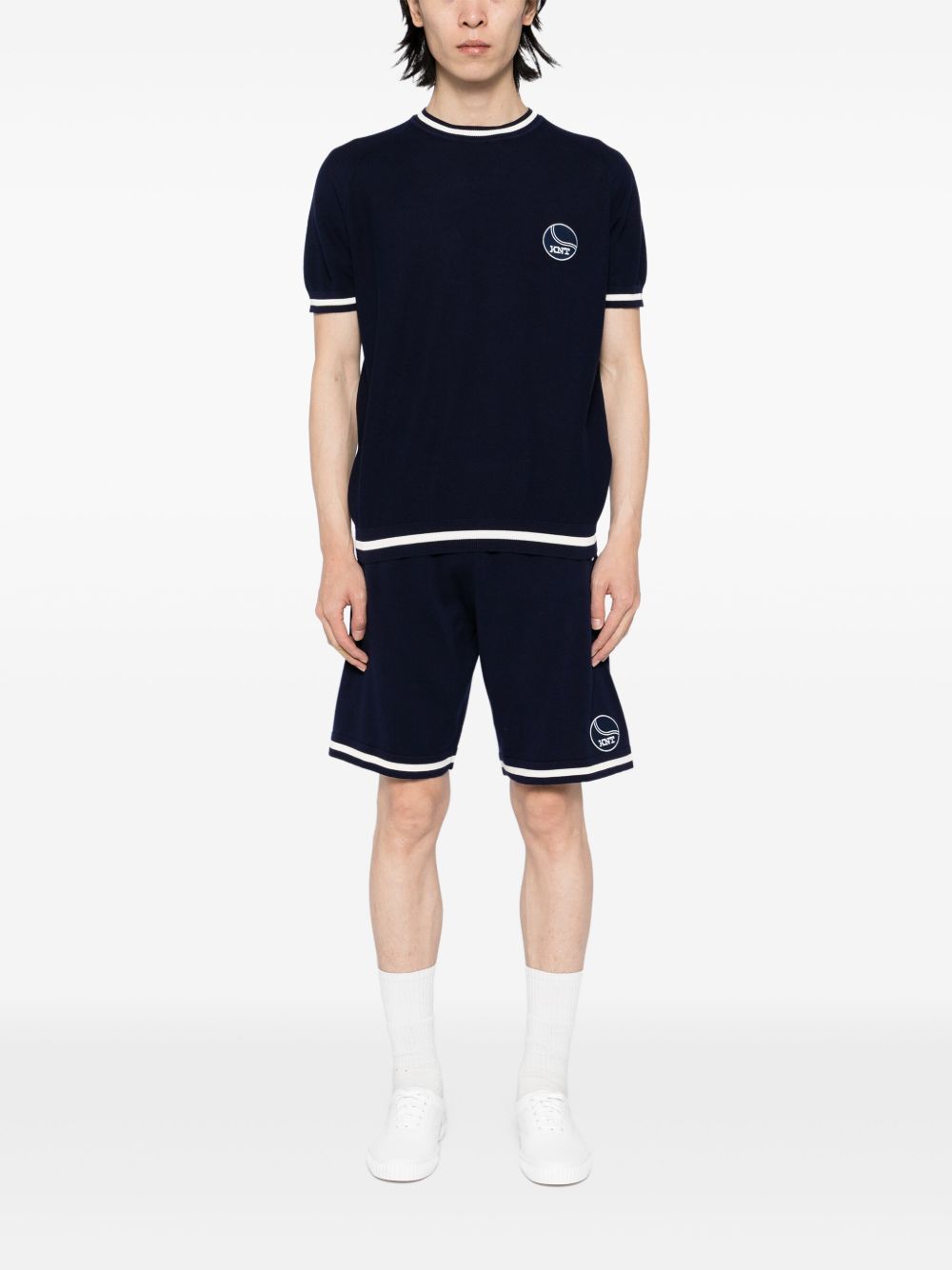 These Knt Shorts feature a navy blue color and an elasticated waistband for comfort and style. With two front welt pockets, you can easily store your essentials while on the go. Perfect for any casual outing or activity.