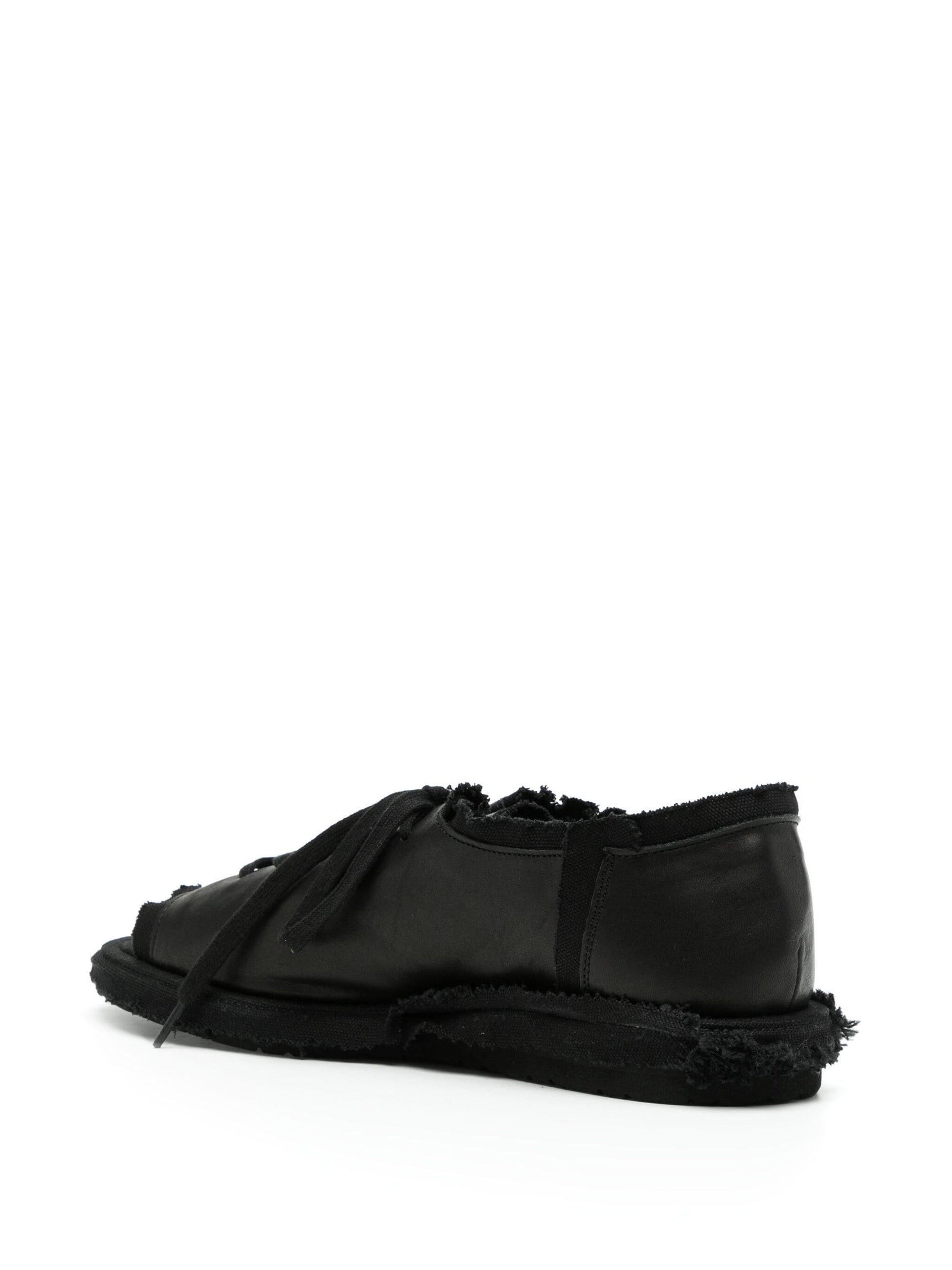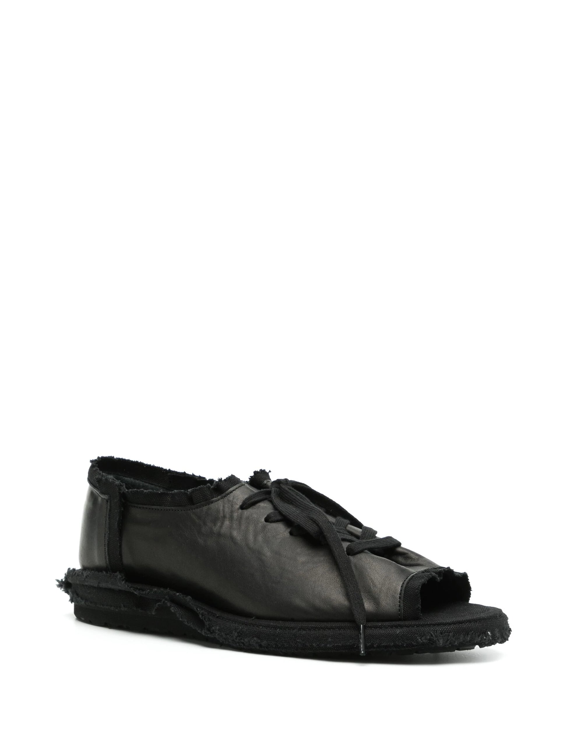 black calf leather frayed detailing front lace-up fastening round open toe flat leather sole
