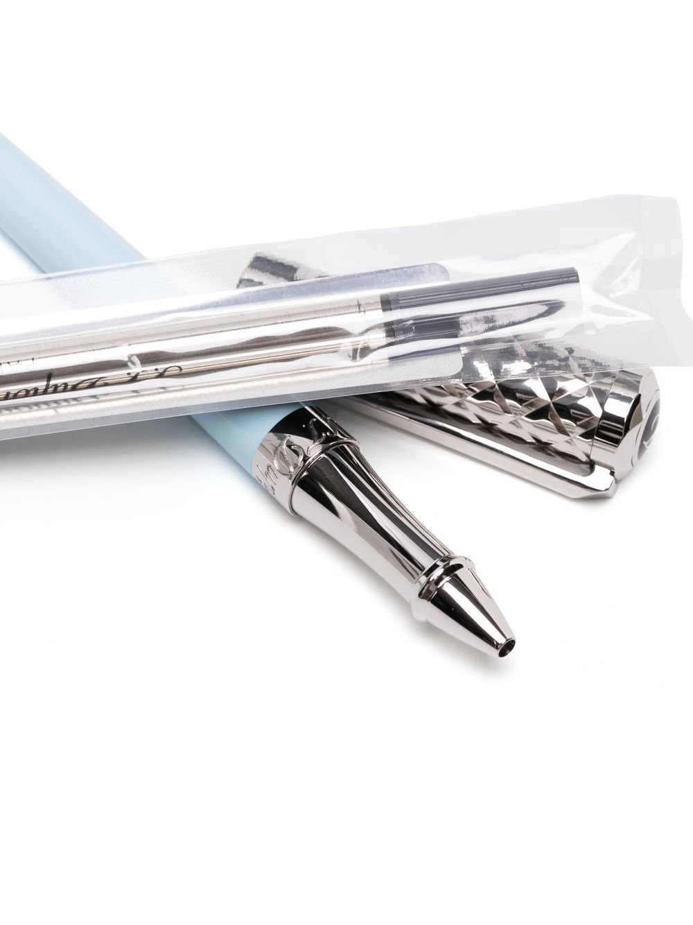 Liberté ballpoint pen from S.T. Dupont featuring baby blue, silver-tone, ballpoint style and engraved detail.