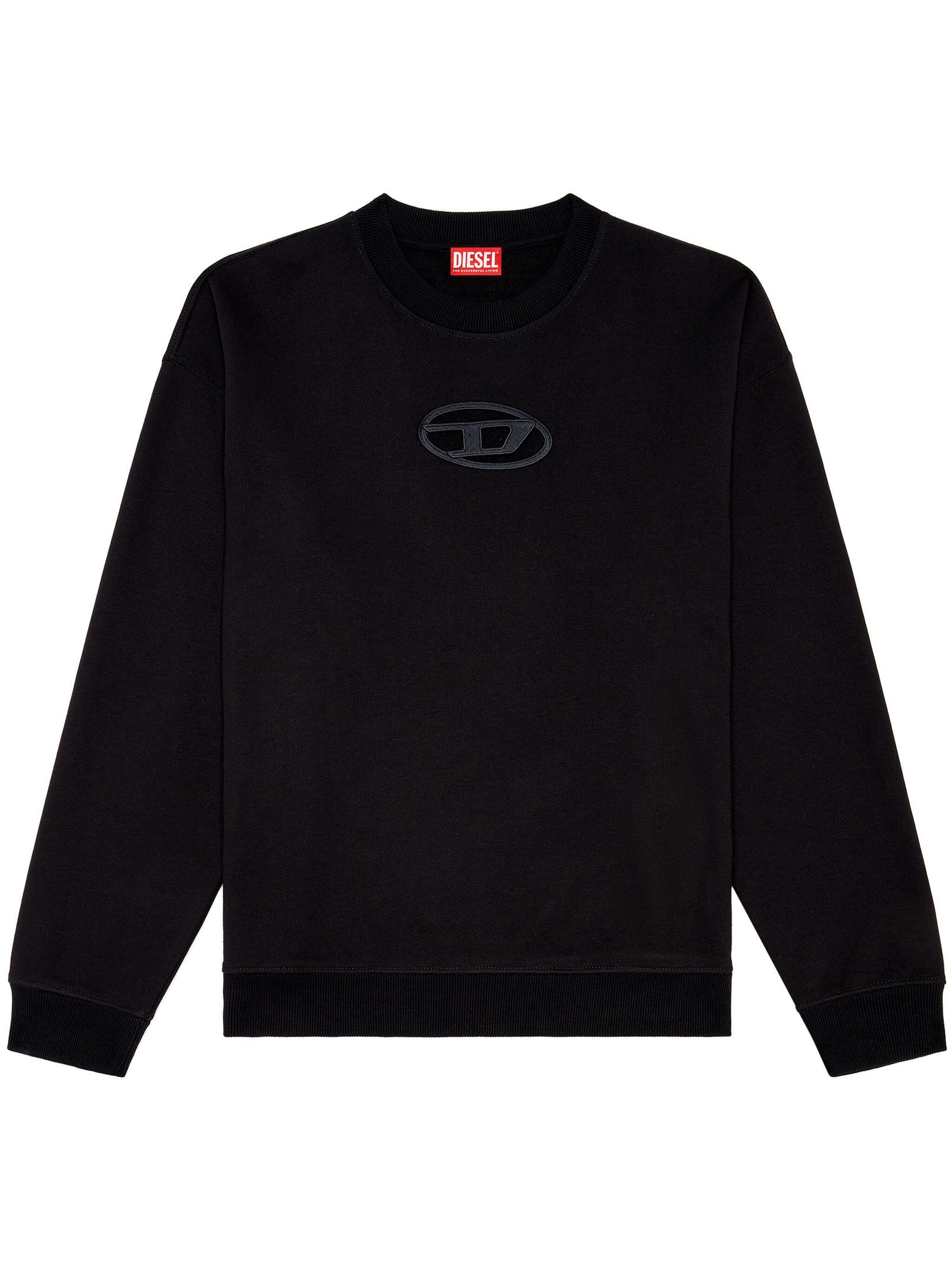 This black sweatshirt features an organic cotton blend and ribbed band collar, along with a cut-out logo to the front for a stylish yet comfortable look. The crew neck and drop shoulder design add a relaxed fit, while the ribbed cuffs and hem provide a secure and cozy feel. Elevate your wardrobe with this versatile and sustainable sweatshirt.