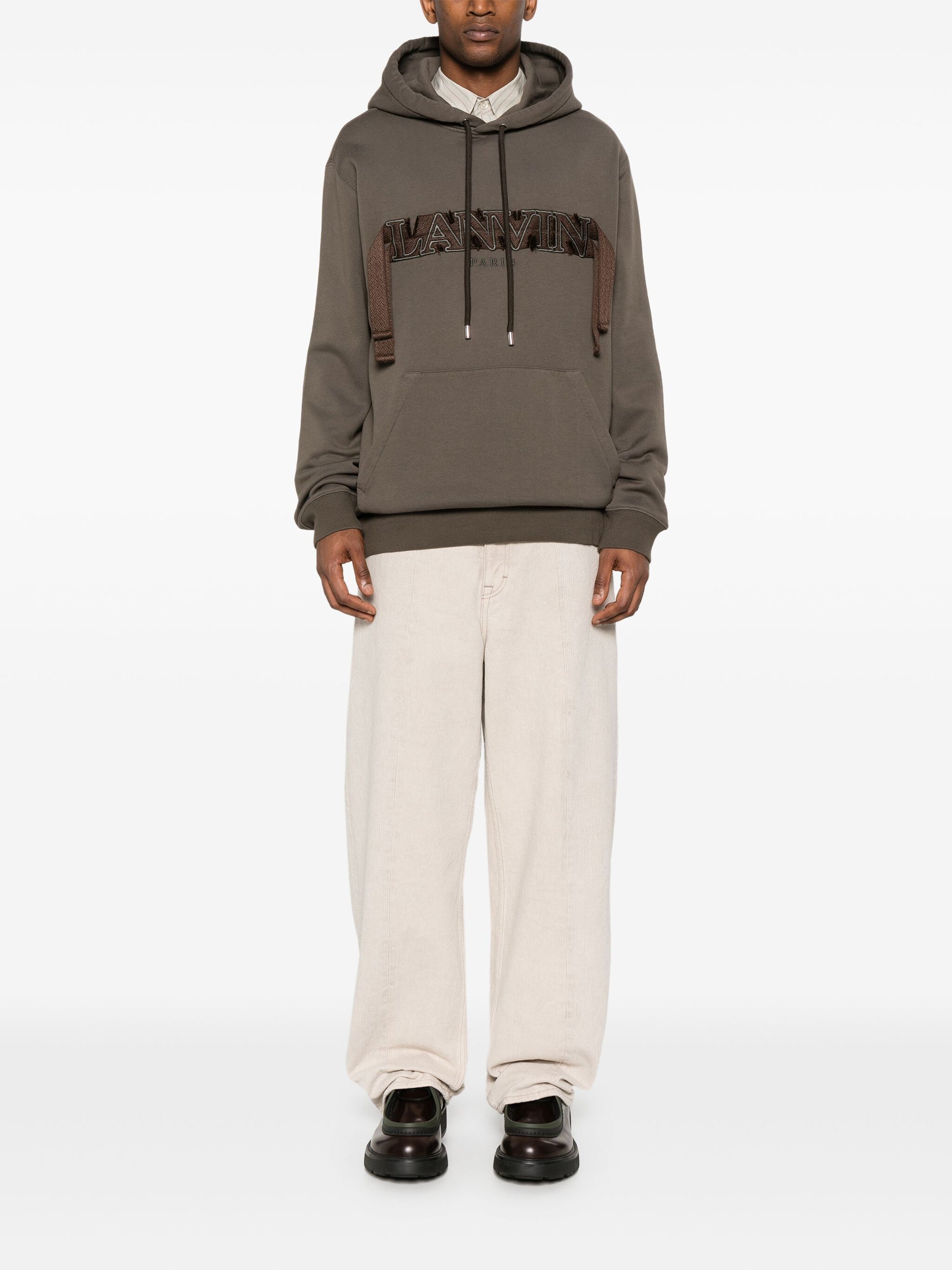 Stay cozy and stylish with our Logo-Embroidered Cotton Hoodie in dark olive green. Made from soft cotton jersey, it features a front embroidered logo with laces detailing, drawstring hood, ribbed cuffs and hem, and a handy front pouch pocket. Perfect for everyday wear, it's the ultimate combination of comfort and fashion.