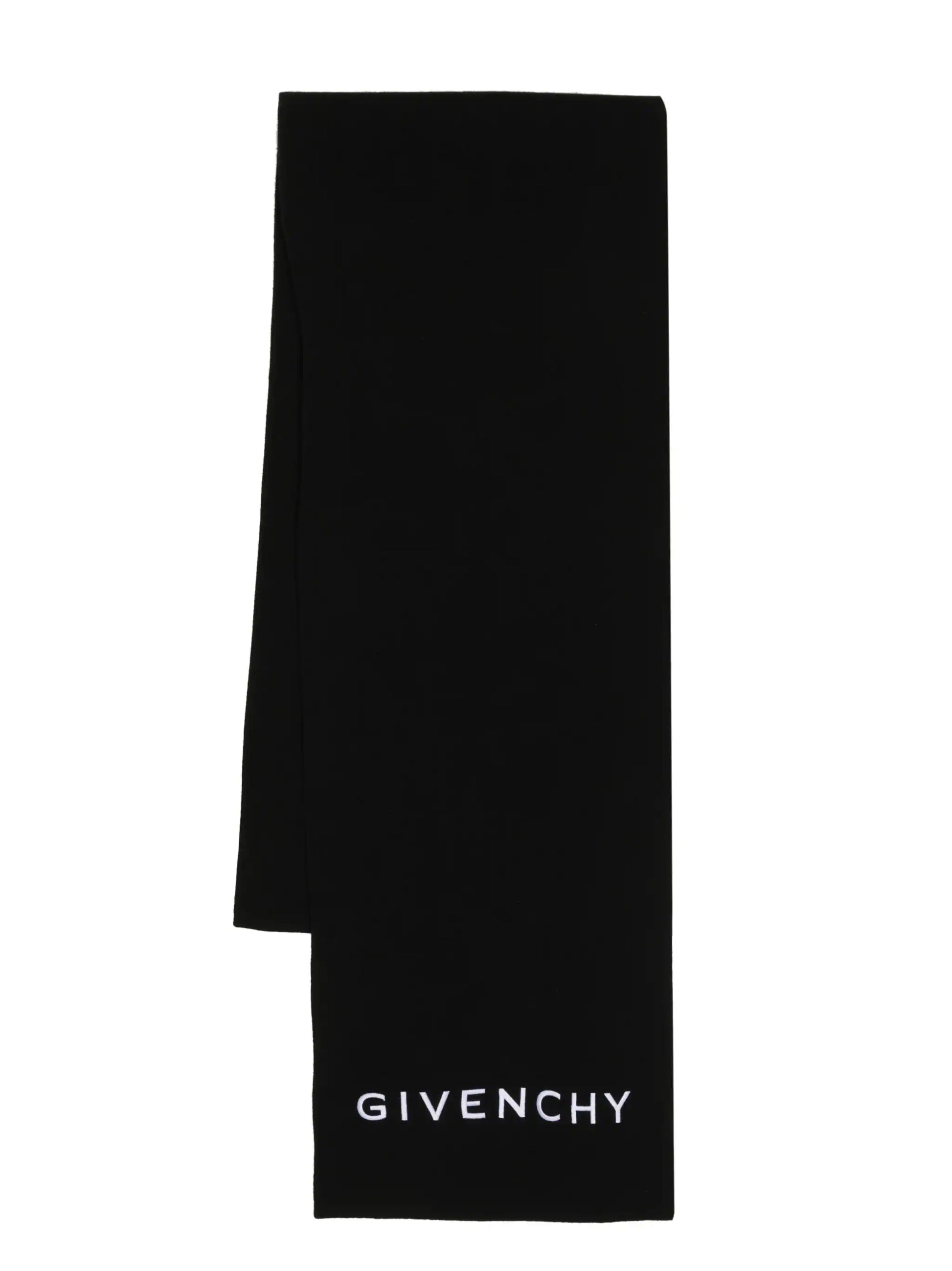 black/white wool-cashmere blend embroidered logo to the front finished edge wraparound style