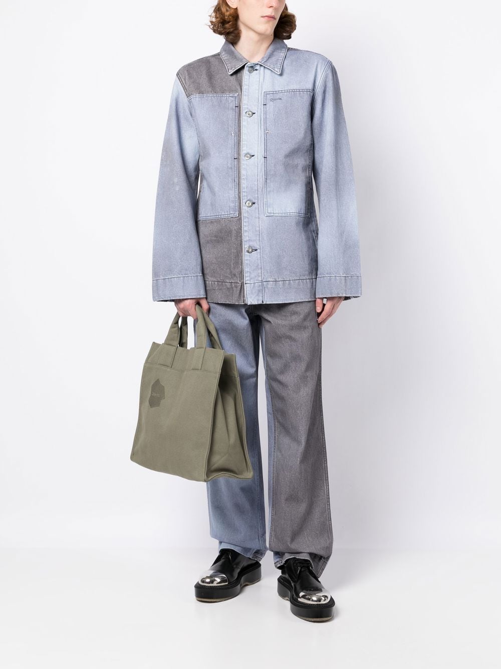 logo-print canvas tote bag from OBJECTS IV LIFE featuring logo print to the front, two top handles, main compartment, dark green, cotton and canvas.