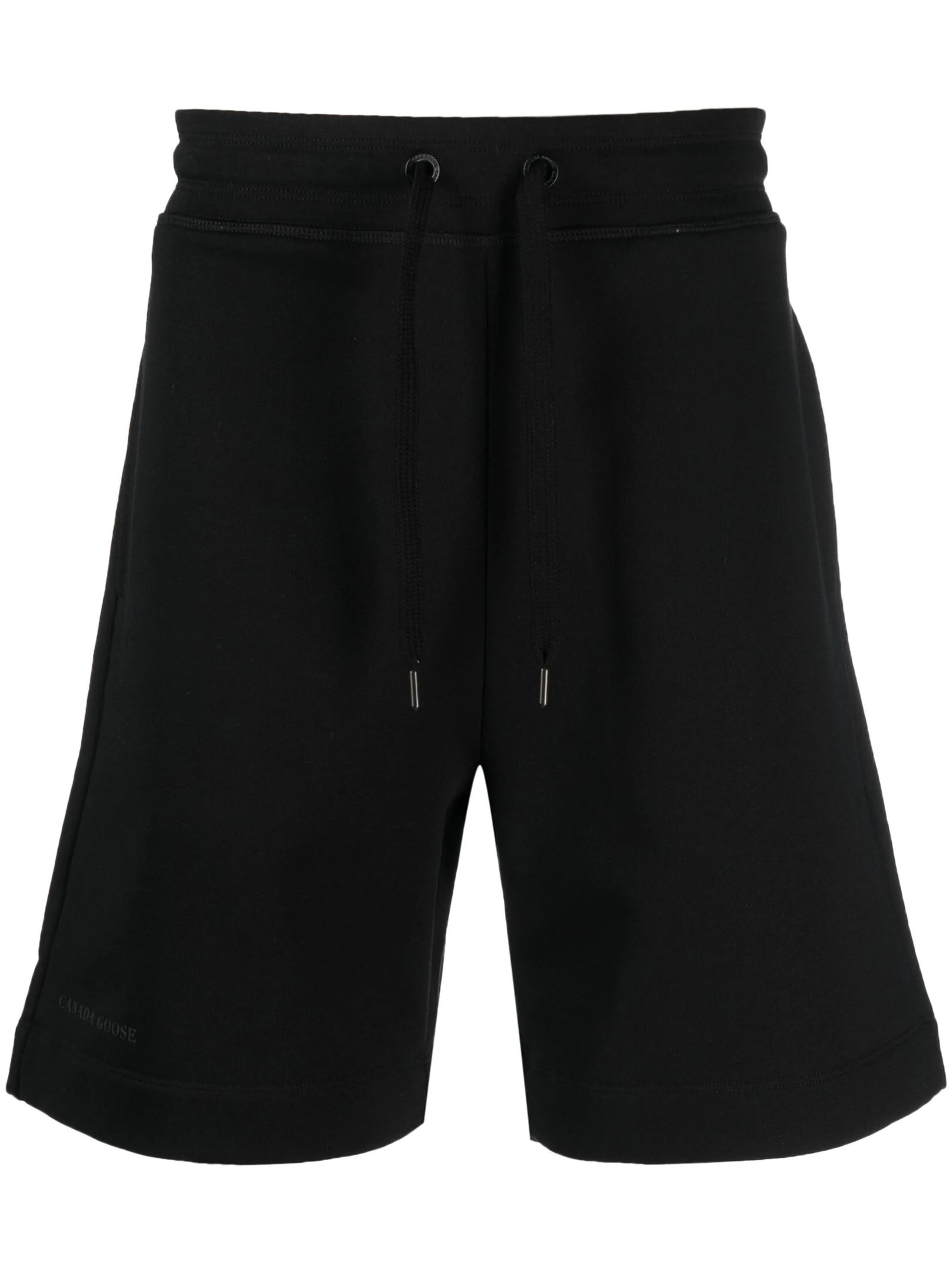 logo-print cotton track shorts from CANADA GOOSE featuring black, cotton, logo print to the front, elasticated drawstring waistband, two side slit pockets and rear patch pocket.