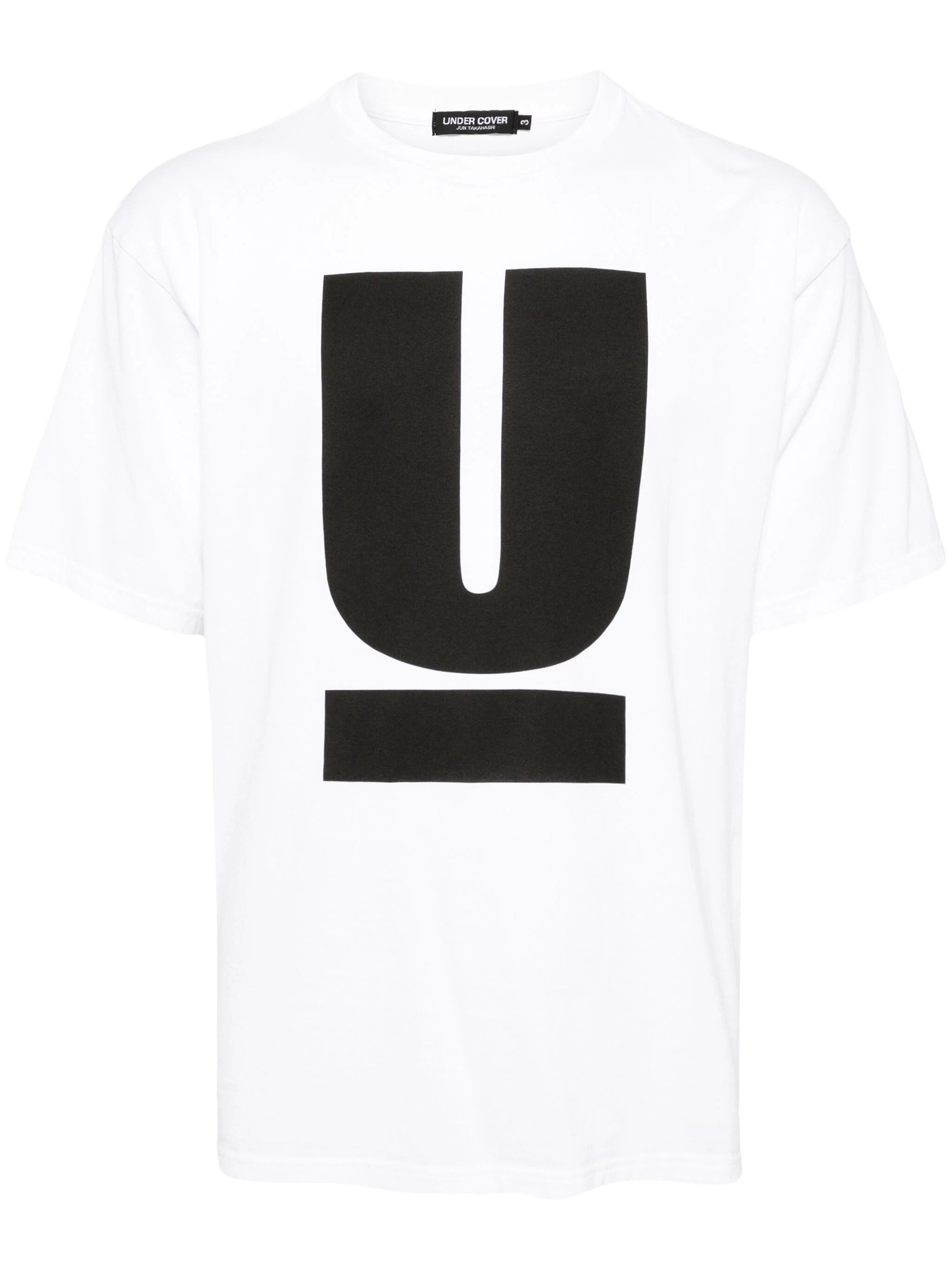 white cotton logo print to the front crew neck short sleeve slogan print to the rear