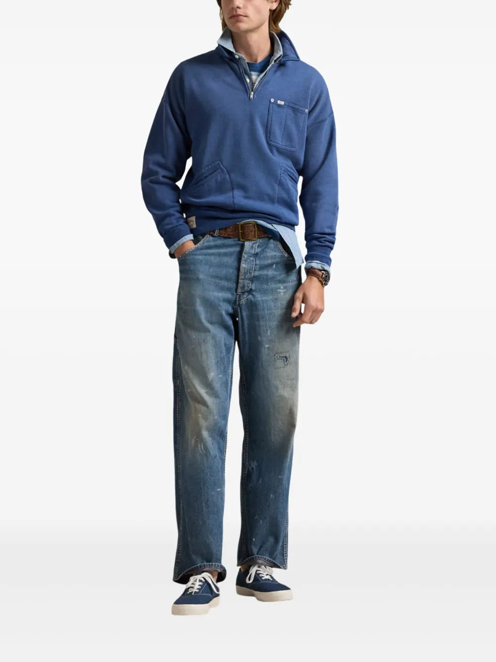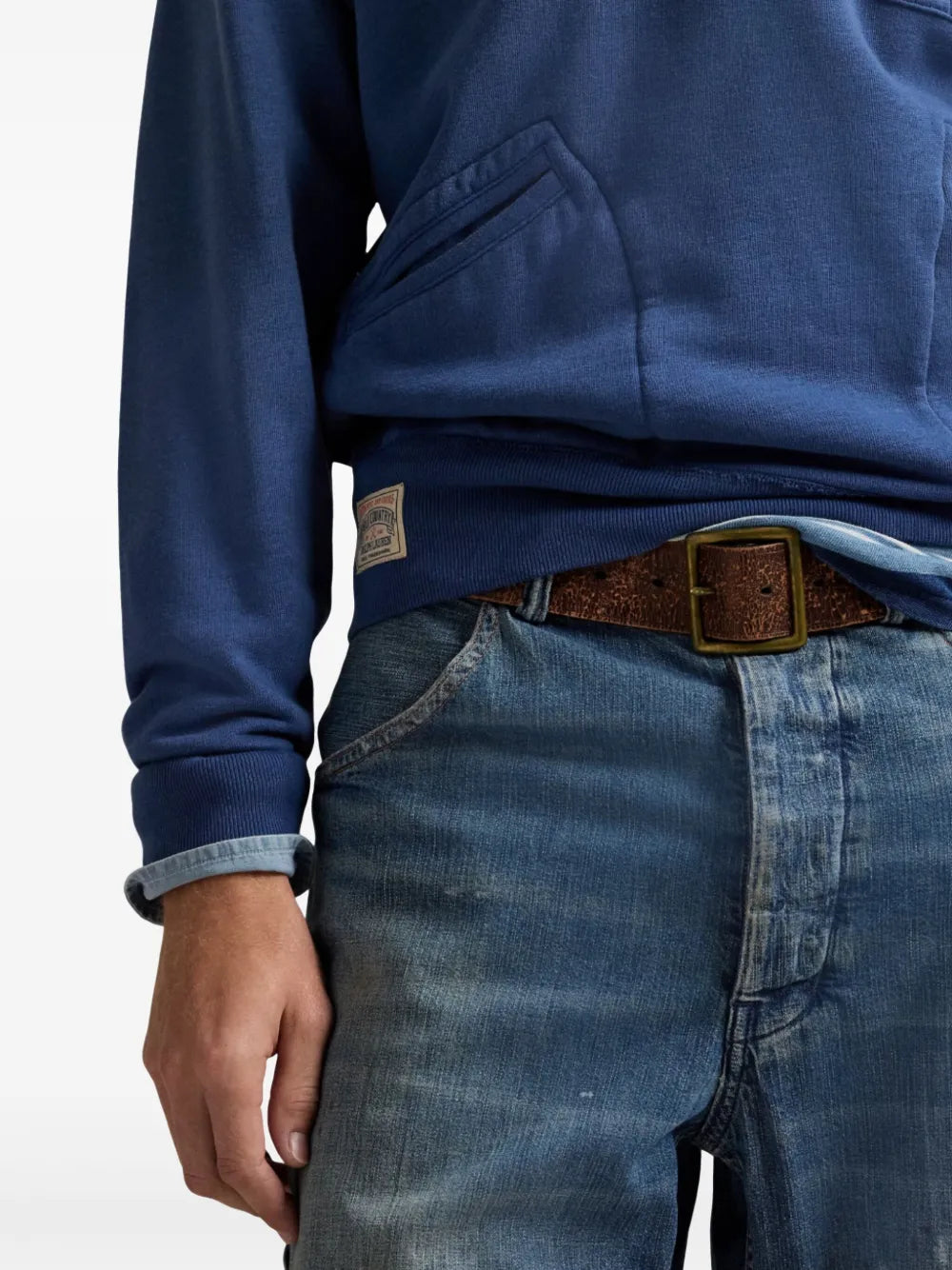 Made for both style and functionality, our Logo-Tag Polo Shirt features a navy blue design with a short front zip fastening and a convenient zip-fastening chest pocket. With two front patch pockets and long sleeves, this shirt is perfect for any professional setting.