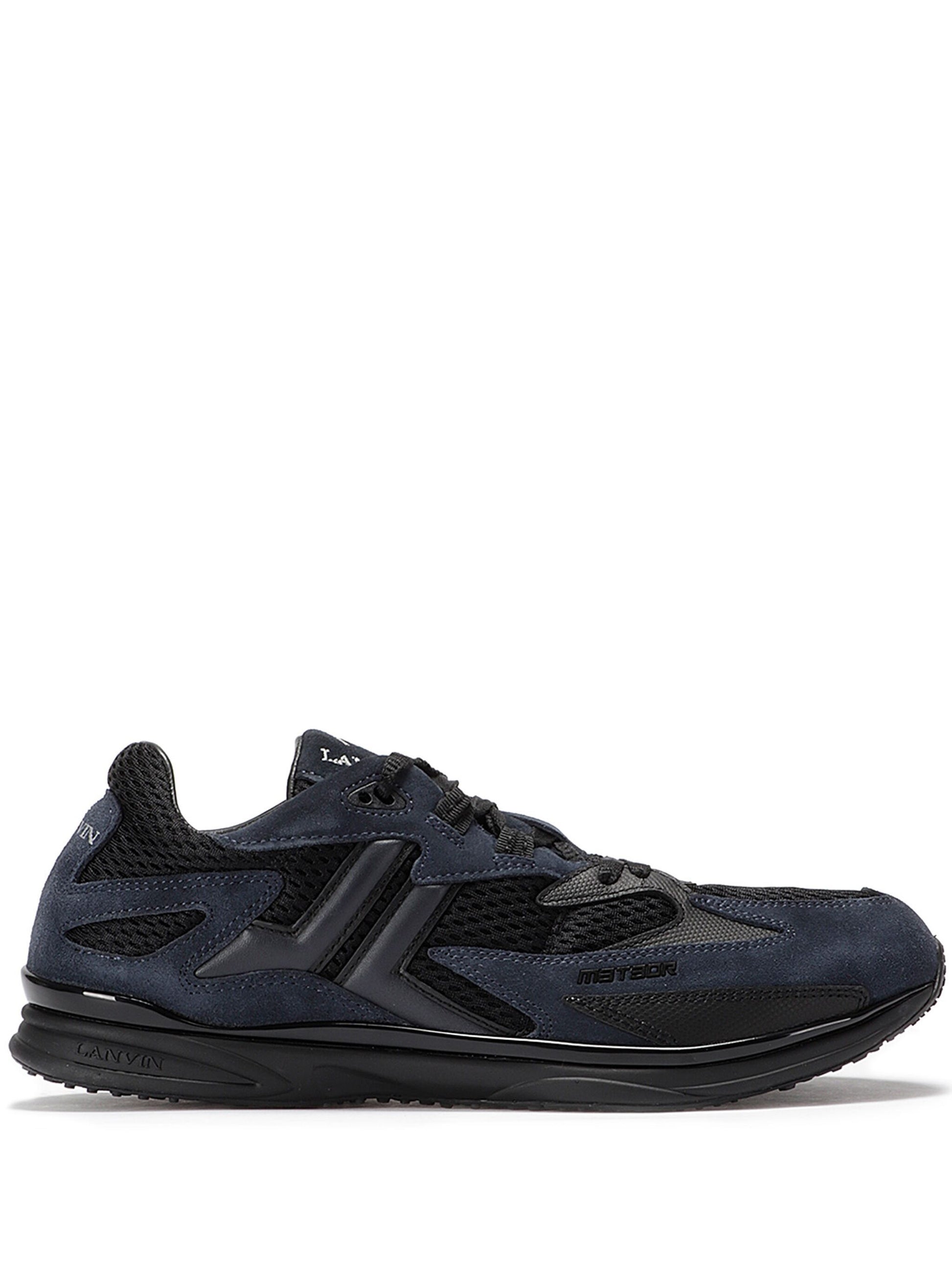 Step up your shoe game with our Meteor Sneakers. The black and blue suede panelled design, alongside mesh detailing and a debossed logo, make these sneakers a stylish addition to any outfit. The round toe, lace-up fastening, and branded insole ensure comfort while the studded sole adds a unique touch.