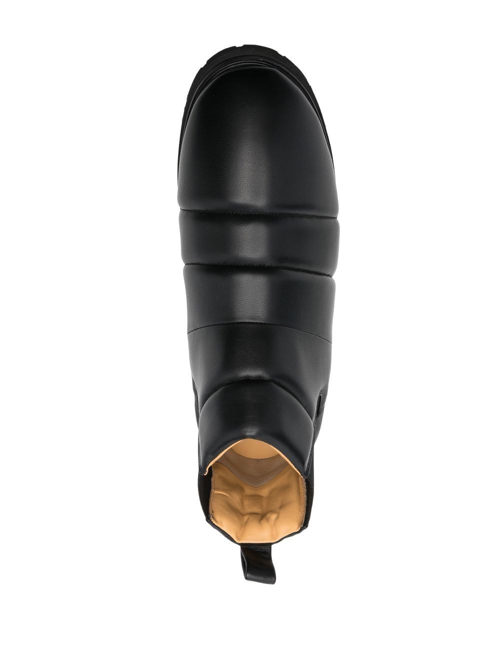 padded ankle boots from NANUSHKA featuring black, calf leather, padded design, pull-tab at the heel, round toe, slip-on style and flat rubber sole.