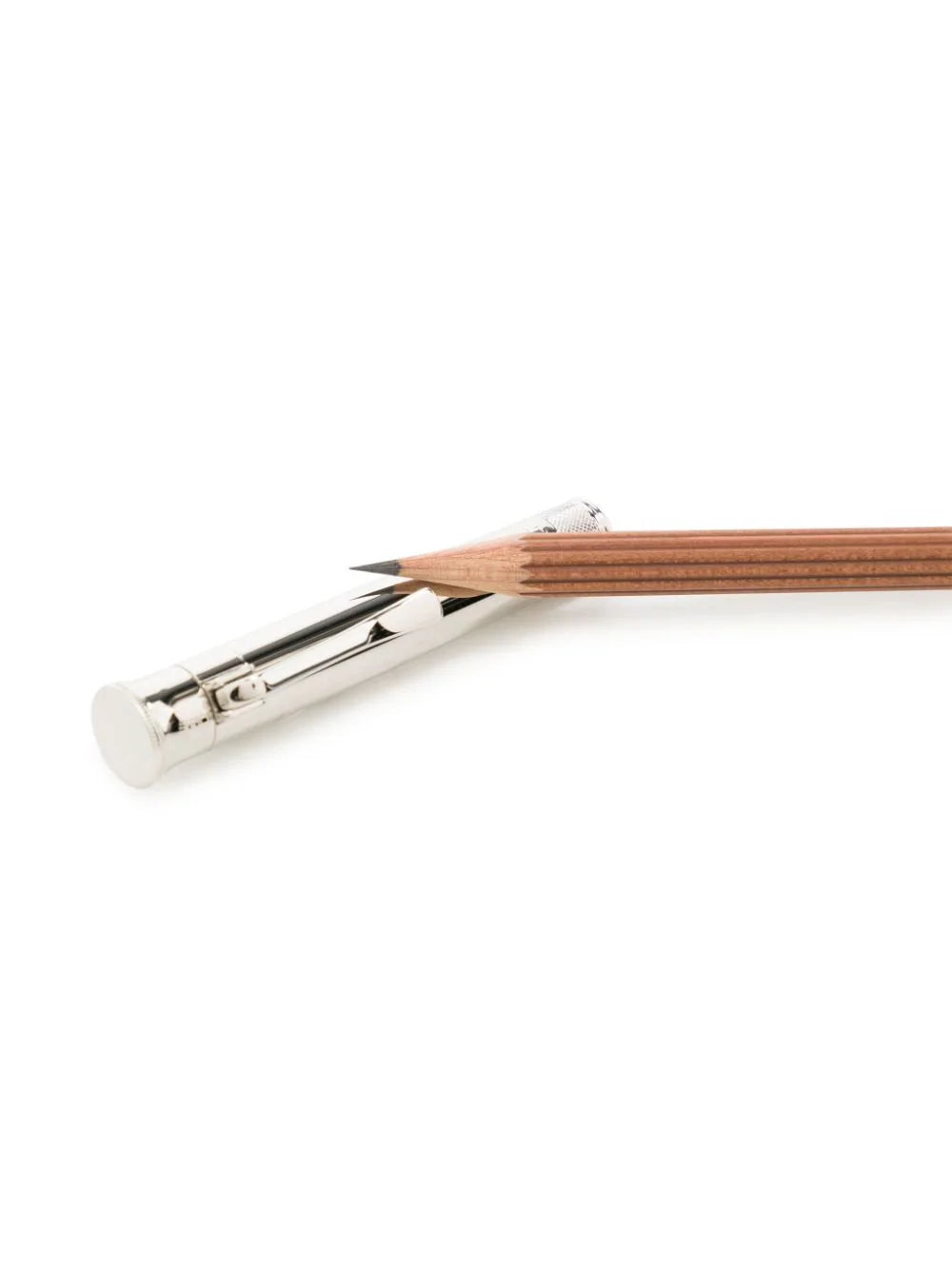 Perfect B-lead ribbed pencil from Graf von Faber-Castell featuring camel brown, silver-tone, wood, fine ribbed, platinum-plated hardware and matching lid.