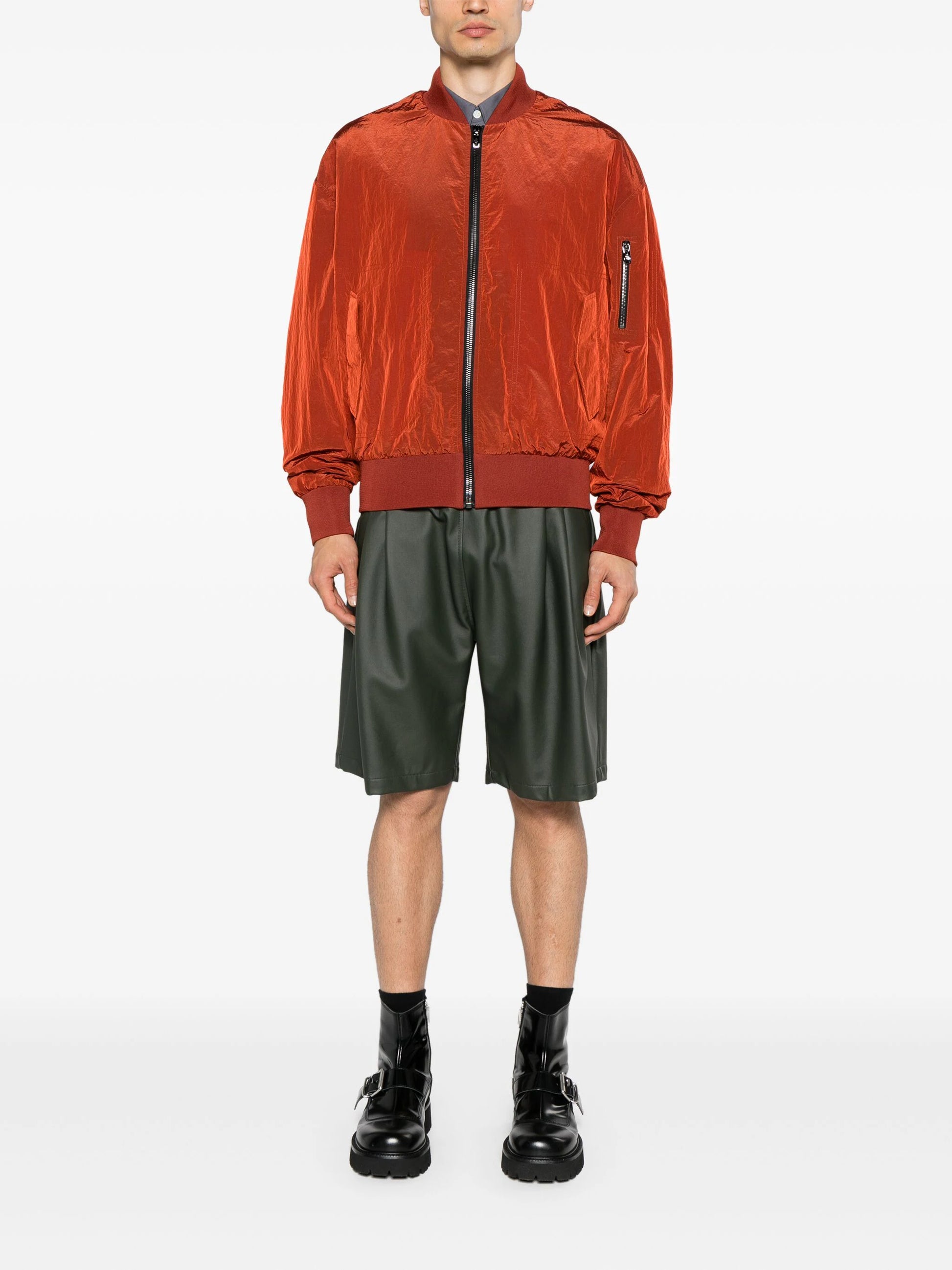 rust red tape detailing reflective effect baseball collar front zip fastening drop shoulder long sleeves sleeve zip pocket ribbed cuffs two side stud-fastening pockets logo-jacquard lining ribbed hem