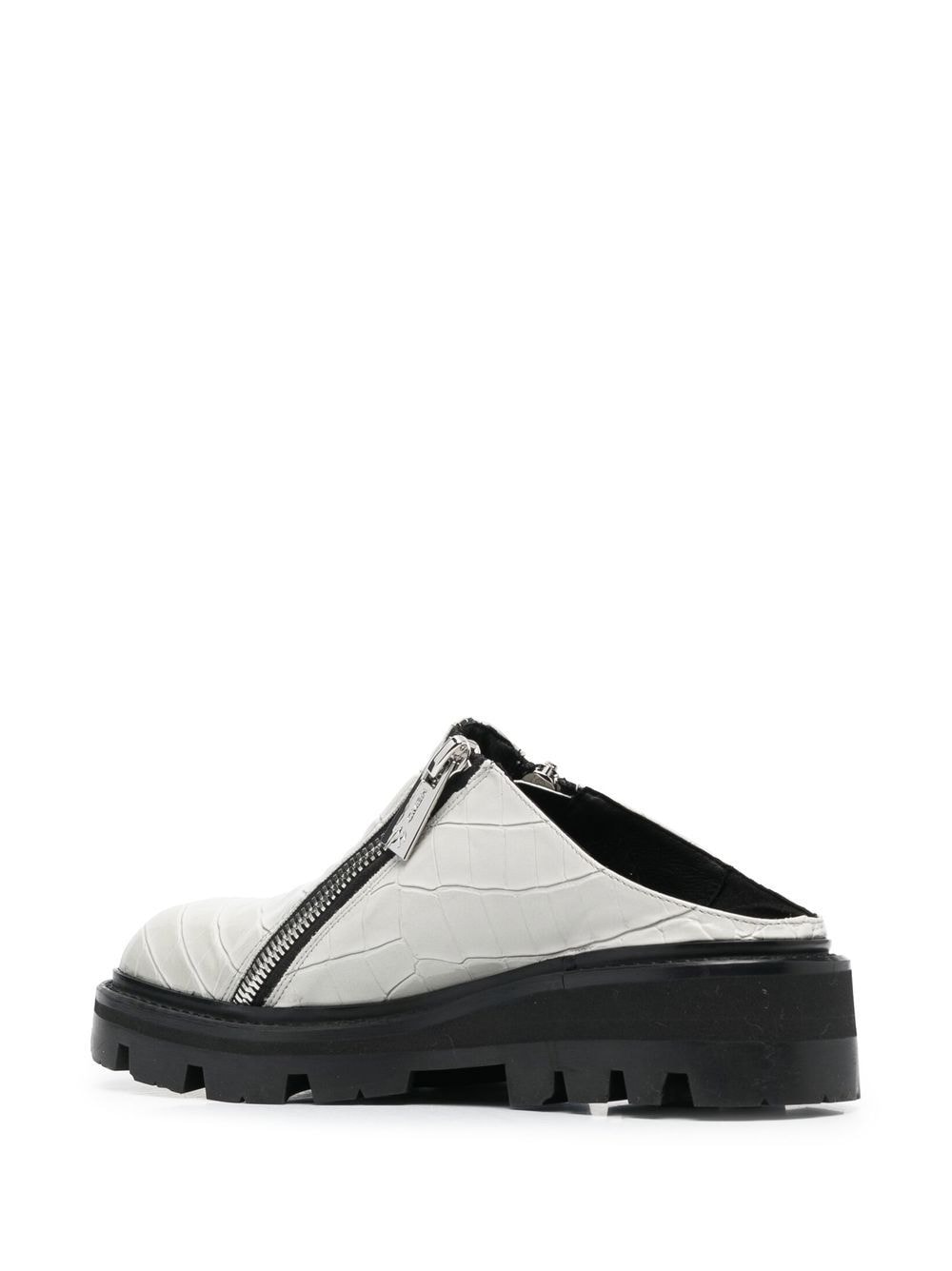 Selim combat mules from GmbH featuring cloud white, slip-on style, zip details, square toe, branded insole and ridged rubber sole.