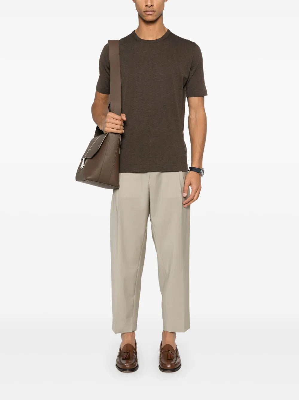 Expertly designed with tobacco brown ribbed cuffs and hem, this Short-Sleeves Cotton T-Shirt offers both style and comfort. The crew neck adds a classic touch, making it the perfect addition to any wardrobe. Made with high-quality cotton, it offers breathability and durability for all-day wear.