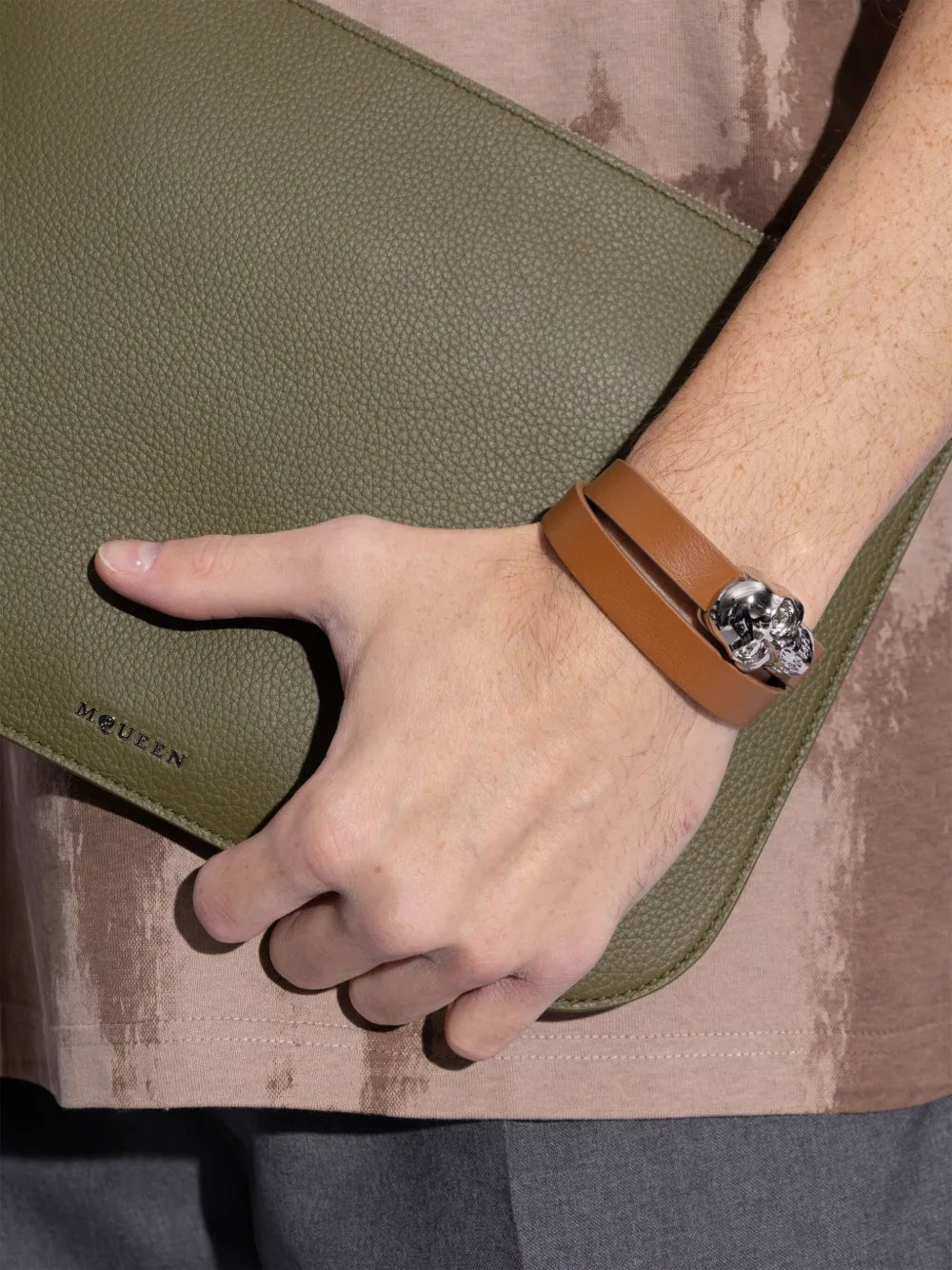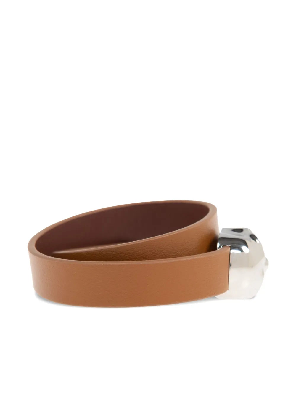 This Skull-Appliqué Bracelet features a unique brown smooth grain design, perfect for adding a touch of edginess to any outfit. Wraparound style allows for easy wear and versatile styling options. Crafted with high-quality materials for durability and long-lasting wear.