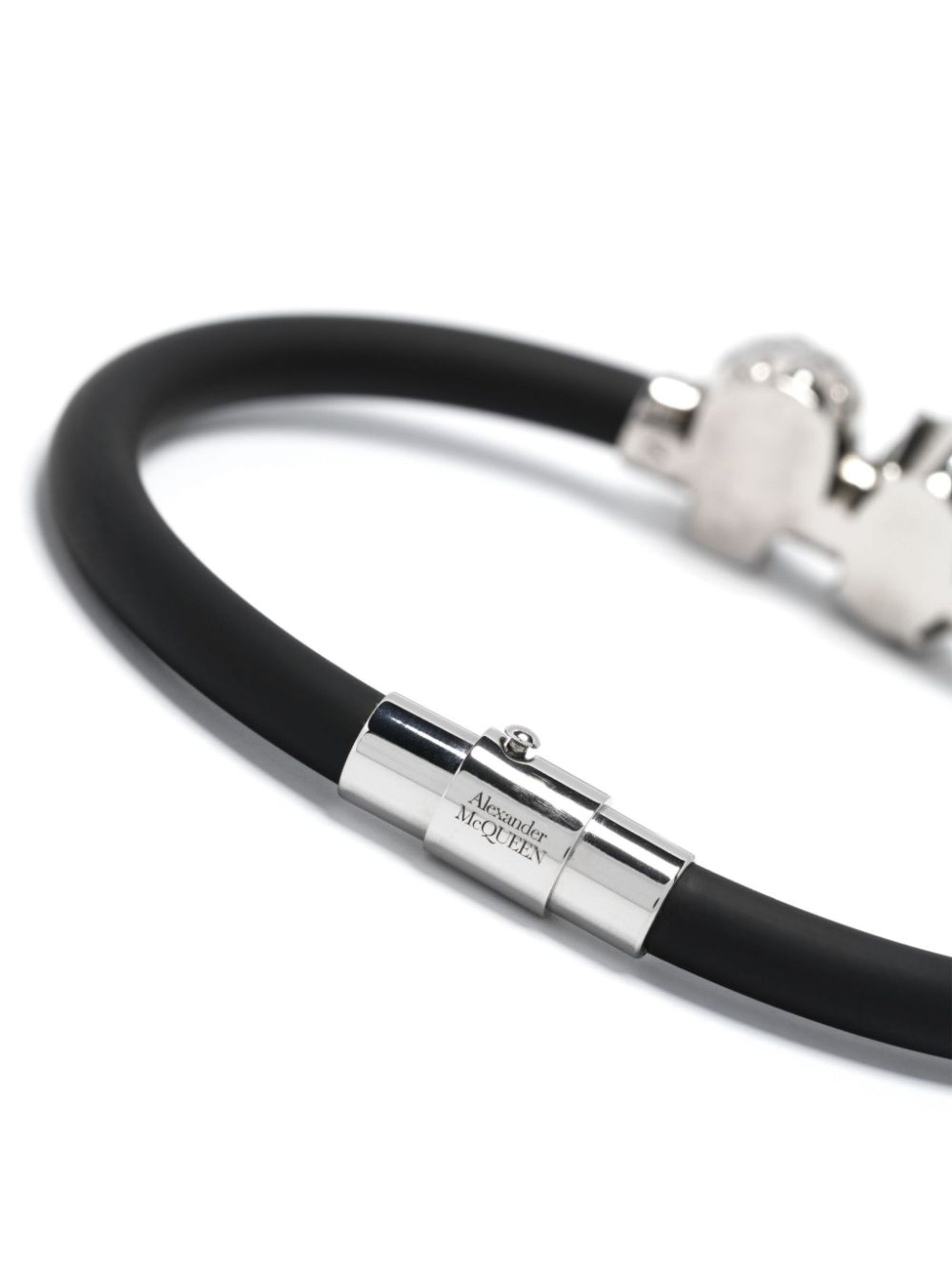 This Skull-Charm Bracelet is a stylish and edgy addition to any accessory collection. The black/silver-tone polished finish and engraved logo adds a sleek and modern touch, while the twist-lock fastening ensures a secure fit. Plus, it comes with a protective dust bag for added durability. Perfect for those looking to make a bold statement with their fashion choices.