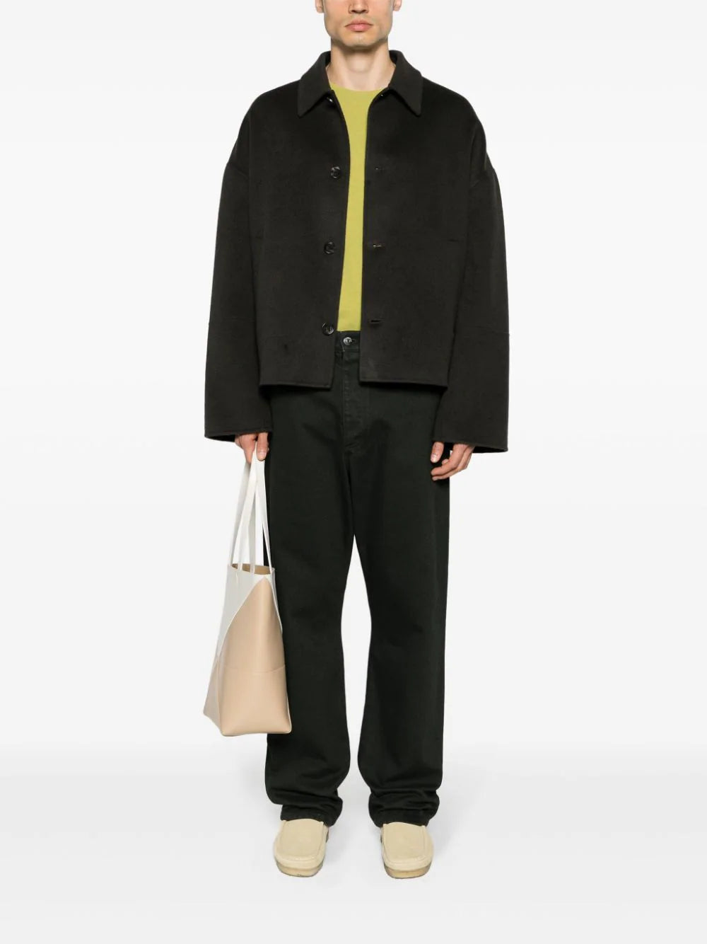 Cotton blend denim twill weave logo patch to the rear belt loops concealed front button fastening straight leg classic five pockets