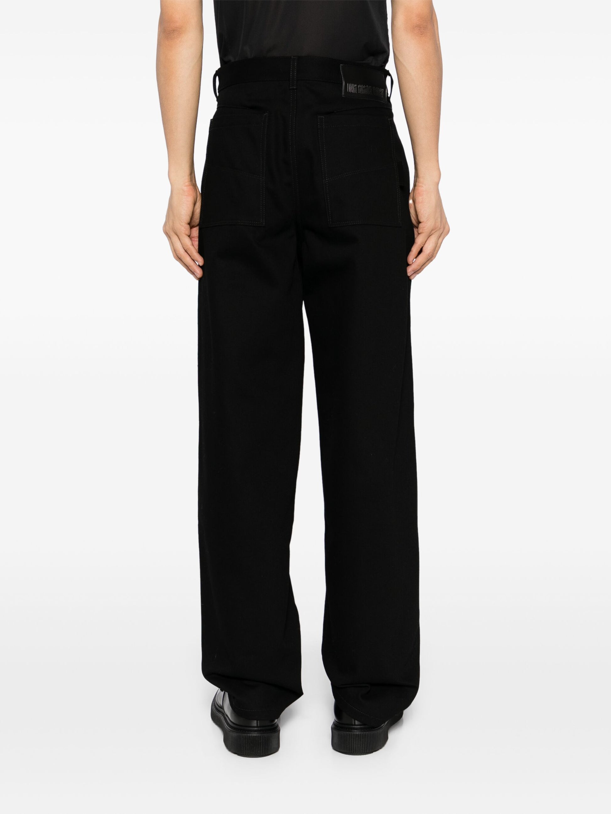 Expertly crafted from black cotton denim, these Straight-Leg Jeans are a versatile and stylish addition to any wardrobe. With a concealed front button and zip fastening, as well as belt loops, these jeans provide a sleek and smooth silhouette. Additionally, the two side welt pockets and two rear patch pockets offer convenience and functionality. The straight hem and straight leg design complete the timeless and modern look. Upgrade your denim game with these expertly designed Straight-Leg Jeans.