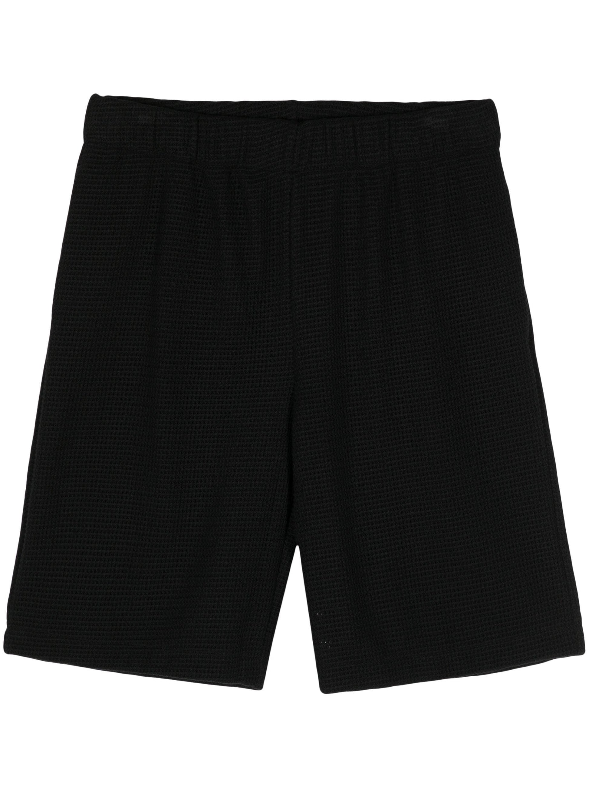 black cotton waffle effect elasticated waistband rear patch pocket thigh-length