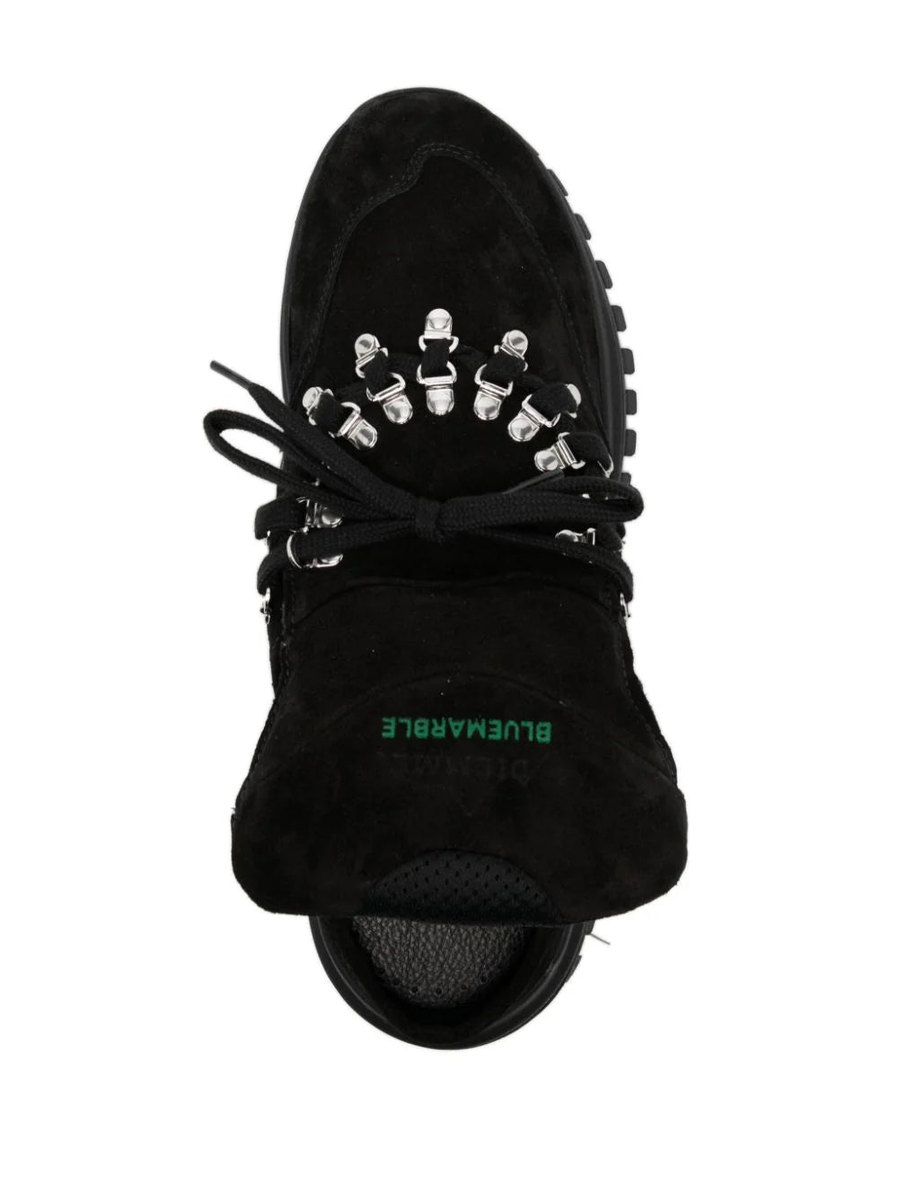 black suede round toe front lace-up fastening logo-print tongue slip-on style rubber sole