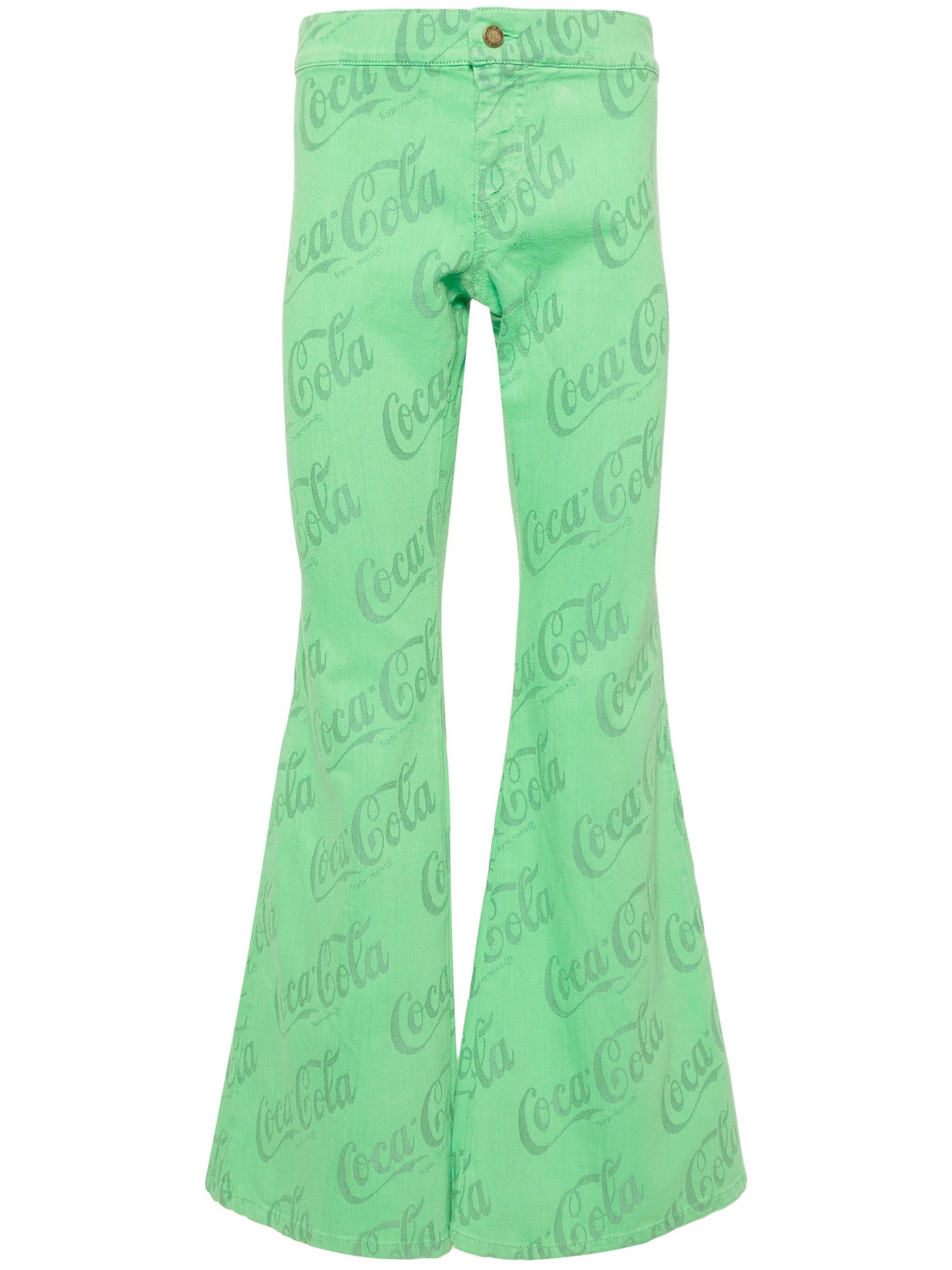 green cotton blend denim monogram jacquard mid-rise front button and zip fastening flared leg slim cut When buying this unisex item, keep in mind that it is graded in standard men's sizing.