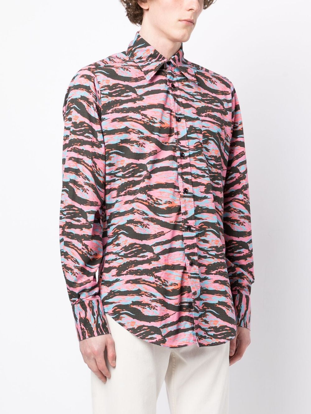 zebra-print cotton shirt from ERL featuring pink, multicolour, cotton, zebra print, classic collar, front button fastening, long sleeves, buttoned cuffs and curved hem.